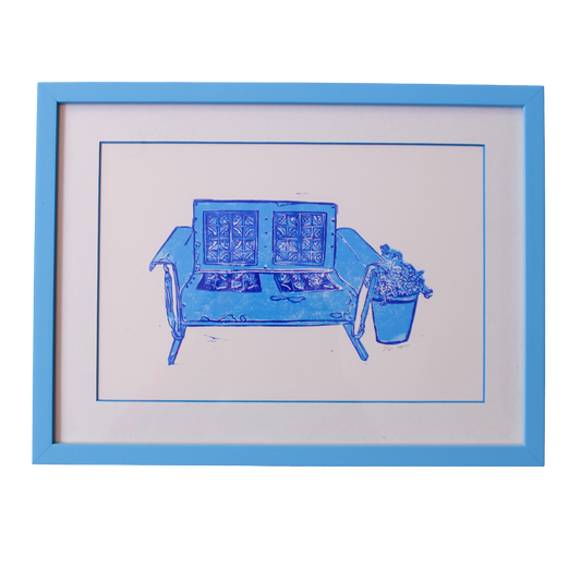 Framed "Blue Garden Chair" Print by Olivia Vannucci