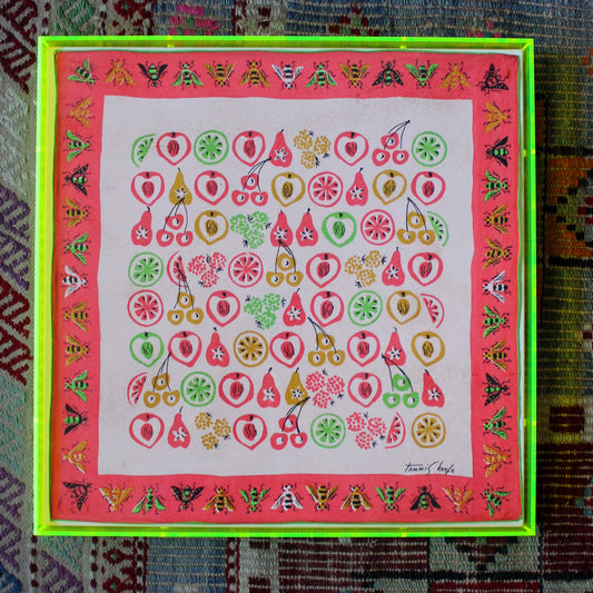 Framed Mid Century Handkerchief - "Neon Fruits"