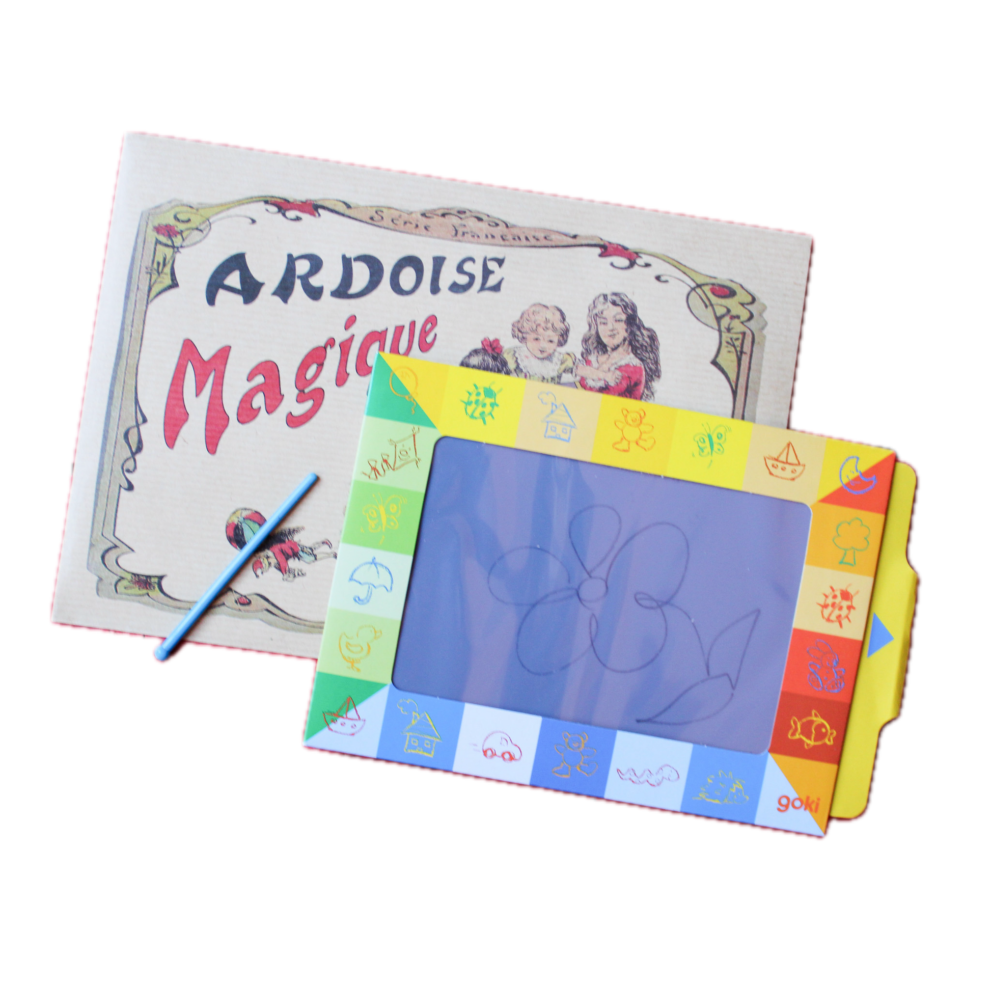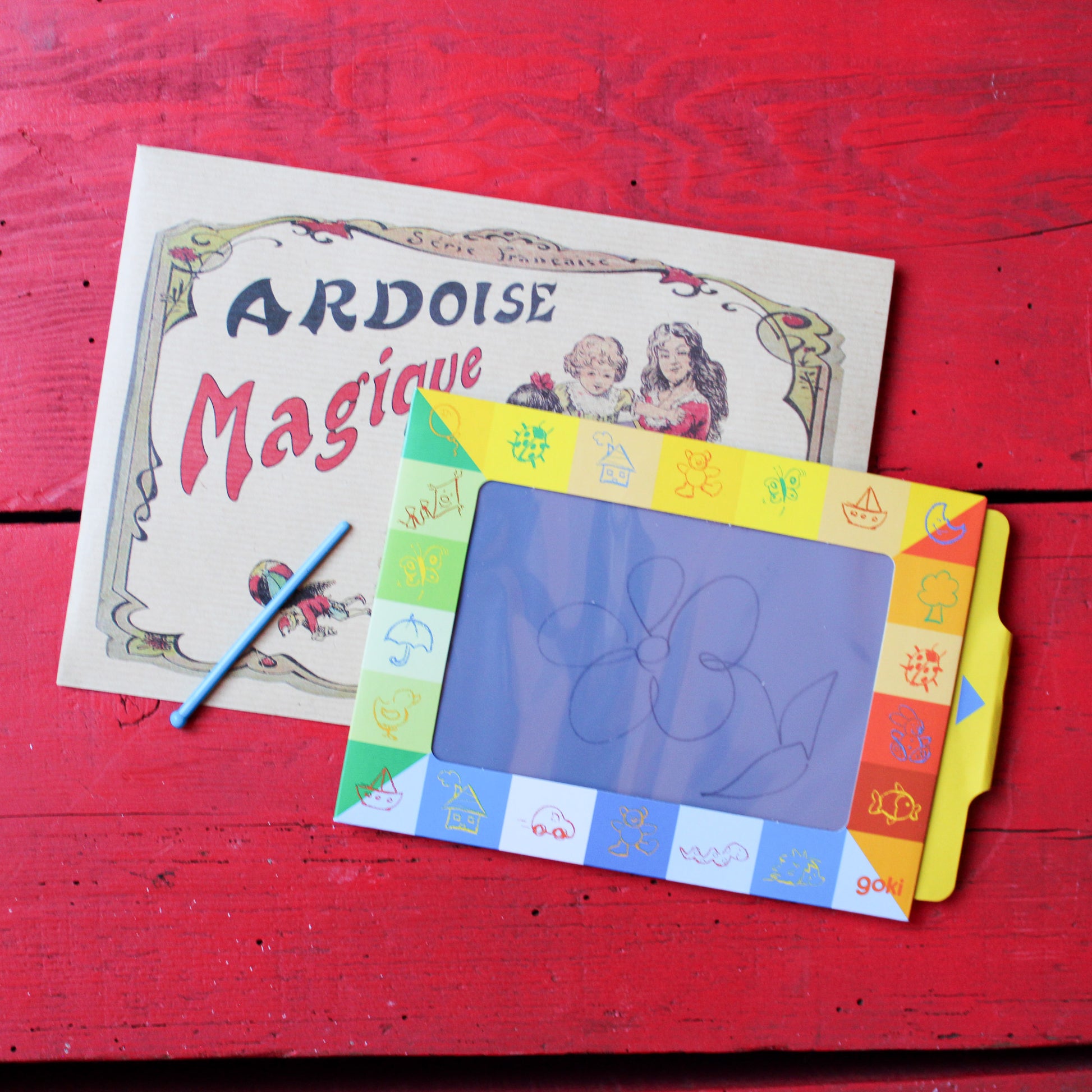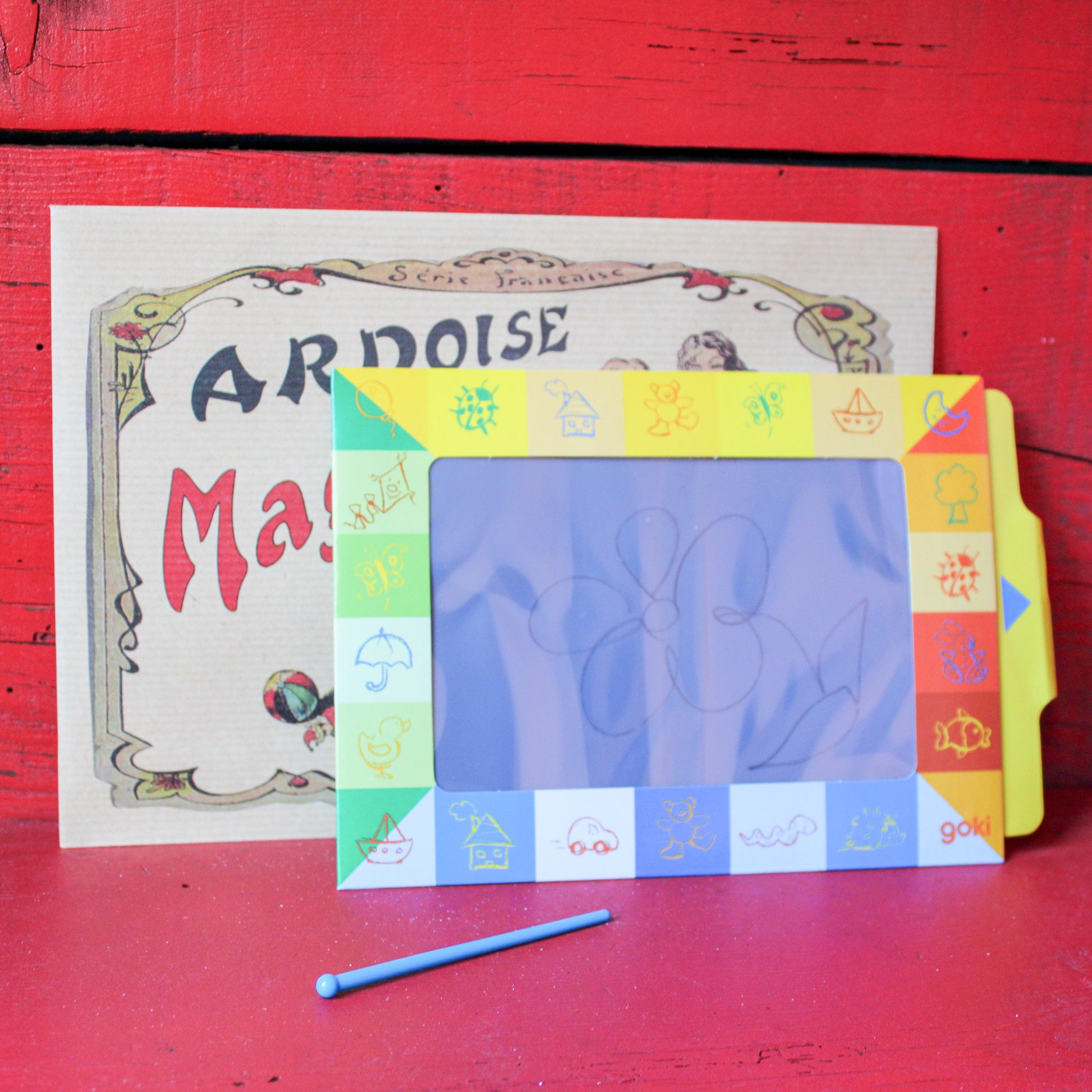 A beautiful MAGIC SLATE in an Old Pouch... DRAW, DRAW... Everything is gone! It is magic!