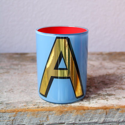 Smooth crystal tumblers inlaid with a gold vinyl letter or symbol, backed with one of six different colored lacquers and a topcoat of glossy varnish. Please note the pots are for decorative use only and are not suitable for food or drink consumption. Whilst durable, the lacquers are water-soluble so if they were ever to be used to hold flowers (which is a fabulous idea) the best thing is to put a small jar of water inside.