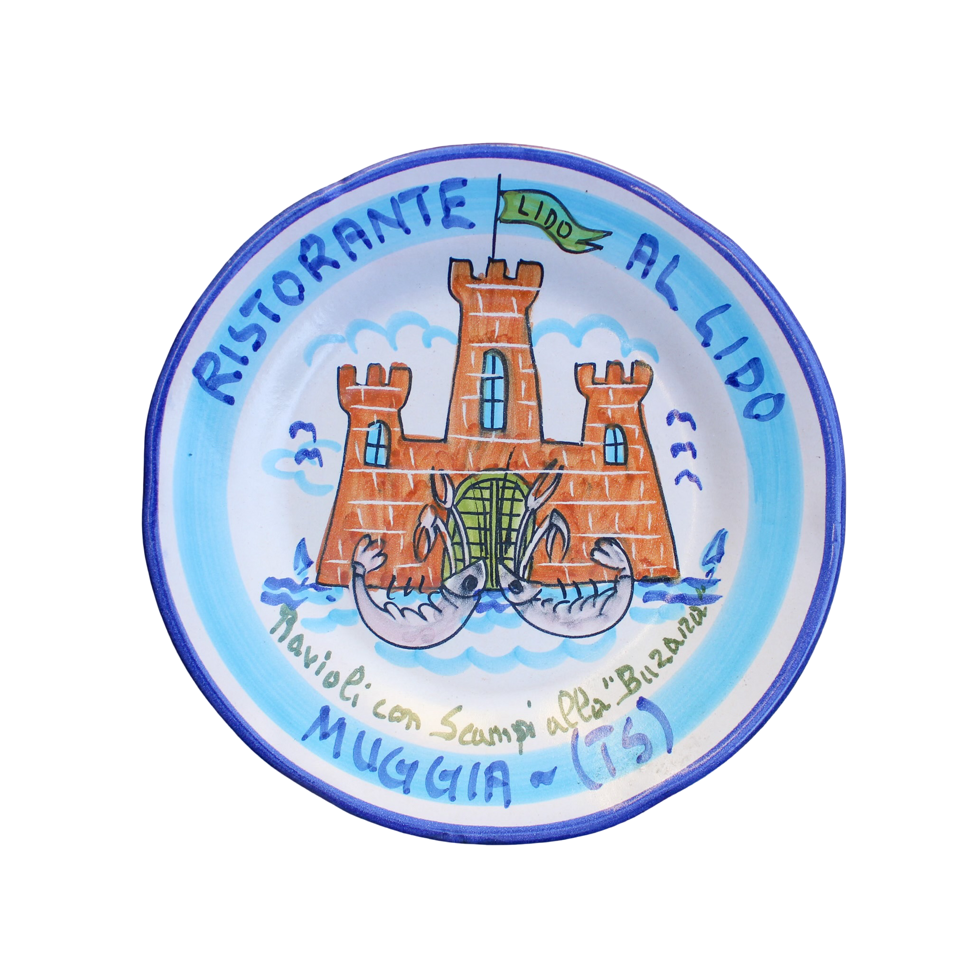 In 1964, a handful of Italian restaurant owners established the “Buon Ricordo” association. A restaurant could become affiliated only if it offered good quality and good value regional cuisine. Every Buon Ricordo affiliated restaurant had a commemorative dish custom designed to portray their most famous recipe. All dishes were hand painted in Vietri in southern Italy. Patrons of these restaurants could order their Buon Ricordo menu and receive the commemorative dish as a present. Year after year more restaurants joined the association and collecting these dishes literally became a mania for many Italians, mostly between the late 60’s and late 80’s.