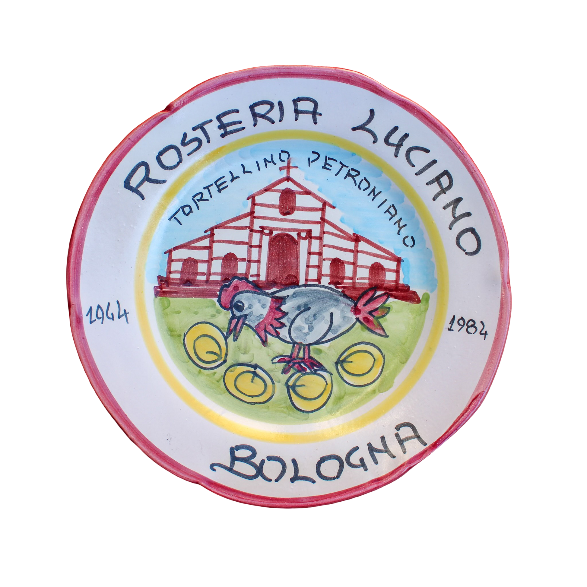 In 1964, a handful of Italian restaurant owners established the “Buon Ricordo” association. A restaurant could become affiliated only if it offered good quality and good value regional cuisine. Every Buon Ricordo affiliated restaurant had a commemorative dish custom designed to portray their most famous recipe. All dishes were hand painted in Vietri in southern Italy. Patrons of these restaurants could order their Buon Ricordo menu and receive the commemorative dish as a present. Year after year more restaurants joined the association and collecting these dishes literally became a mania for many Italians, mostly between the late 60’s and late 80’s.