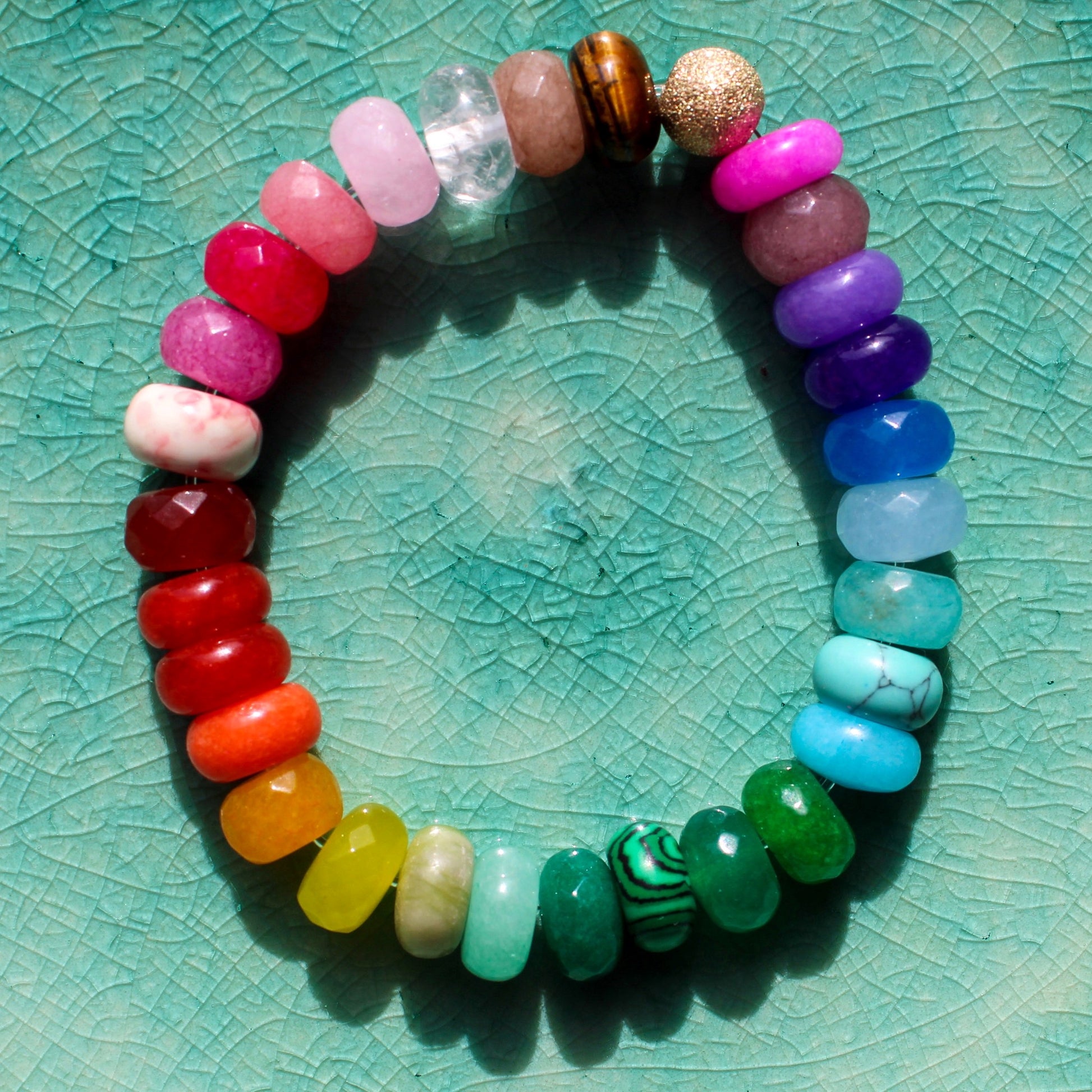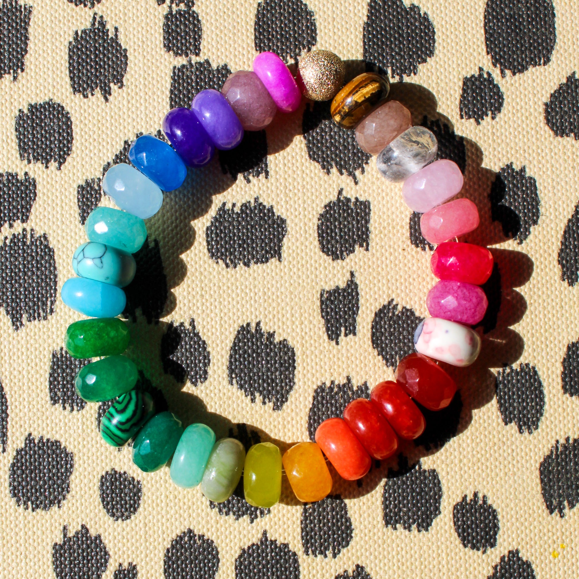 - All bracelets include semi-precious stones and 14k gold plated bead