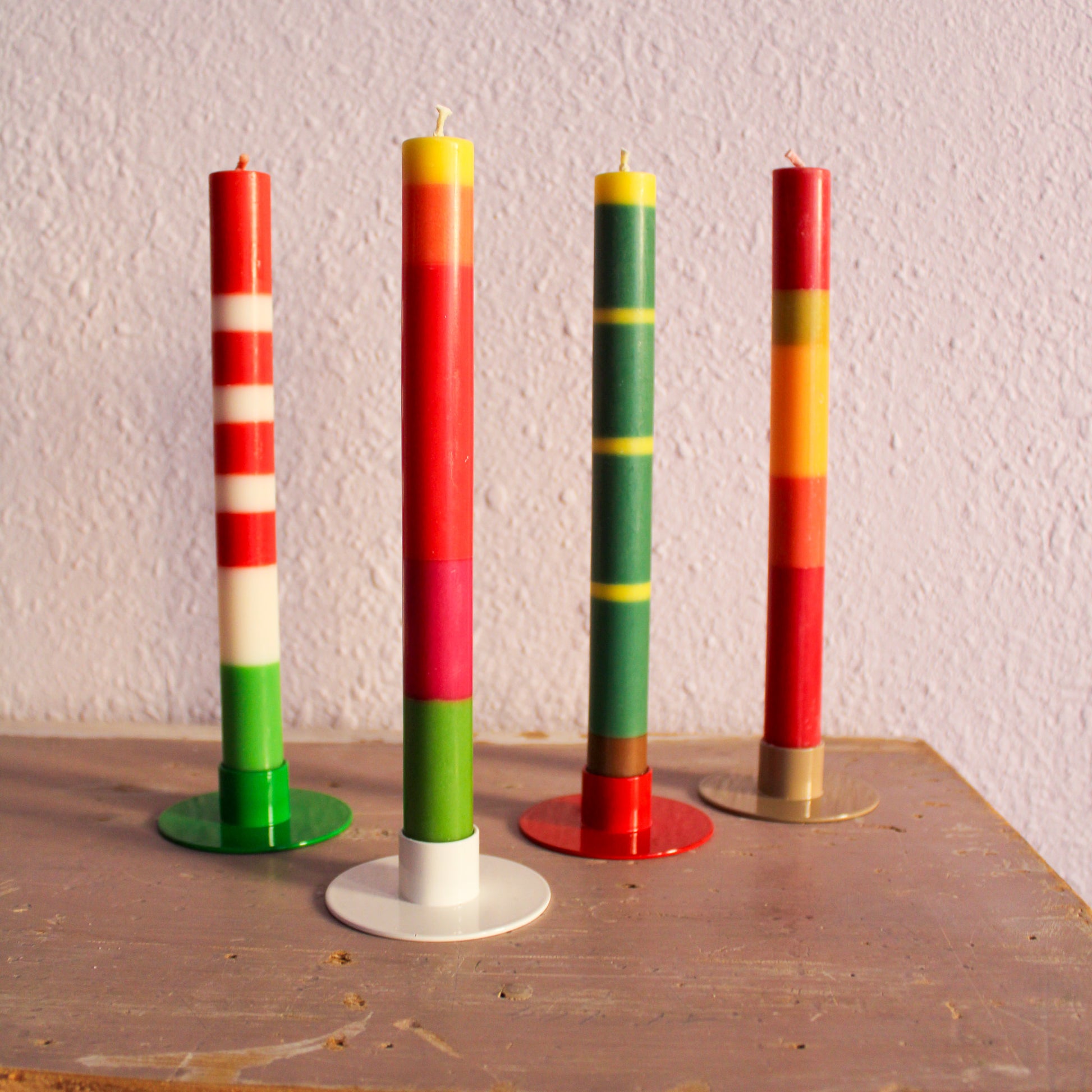 A gift, congratulations or a greeting - we have the right candle for every theme, individually packaged in a colored cardboard box. The candle is made of dyed wax - layer by layer of color is painstakingly poured by hand during production. The packaging is printed and processed in Hamburg in a climate-neutral way on FSC-certified, open design paper.