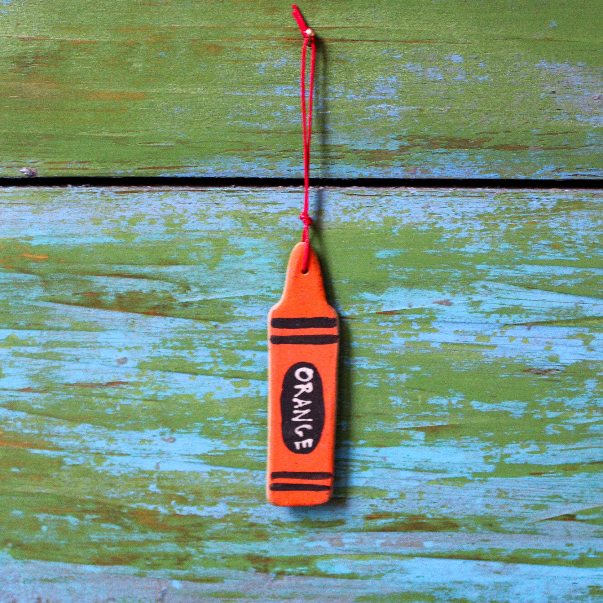 Handmade ceramic crayon ornament with hand-painted details in colorful underglaze. Each ornament is strung with a durable nylon chord. These beautiful one-of-a-kind ornaments make for lovely gifts during the holiday season.