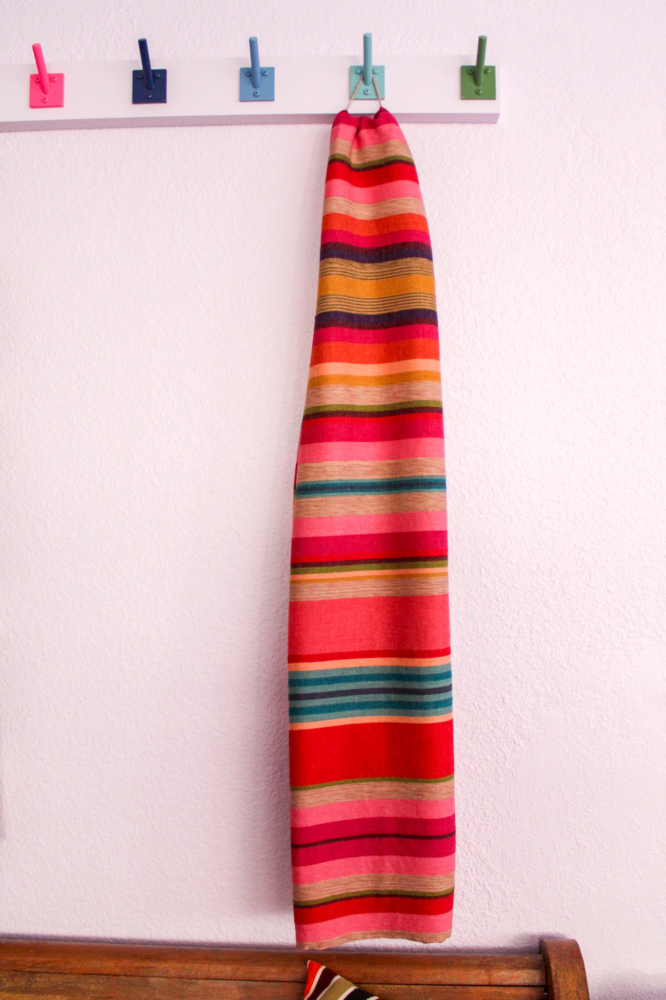 Our Khadi desert shawls are hand-spun, hand-woven cloths from India through fair trade co-ops, composed of a 90% wool weft and 10% cotton warp. Wool and cotton are first spun into yarn on a charkha, a spinning wheel, and then hand-dyed exclusively for Garza Marfa.