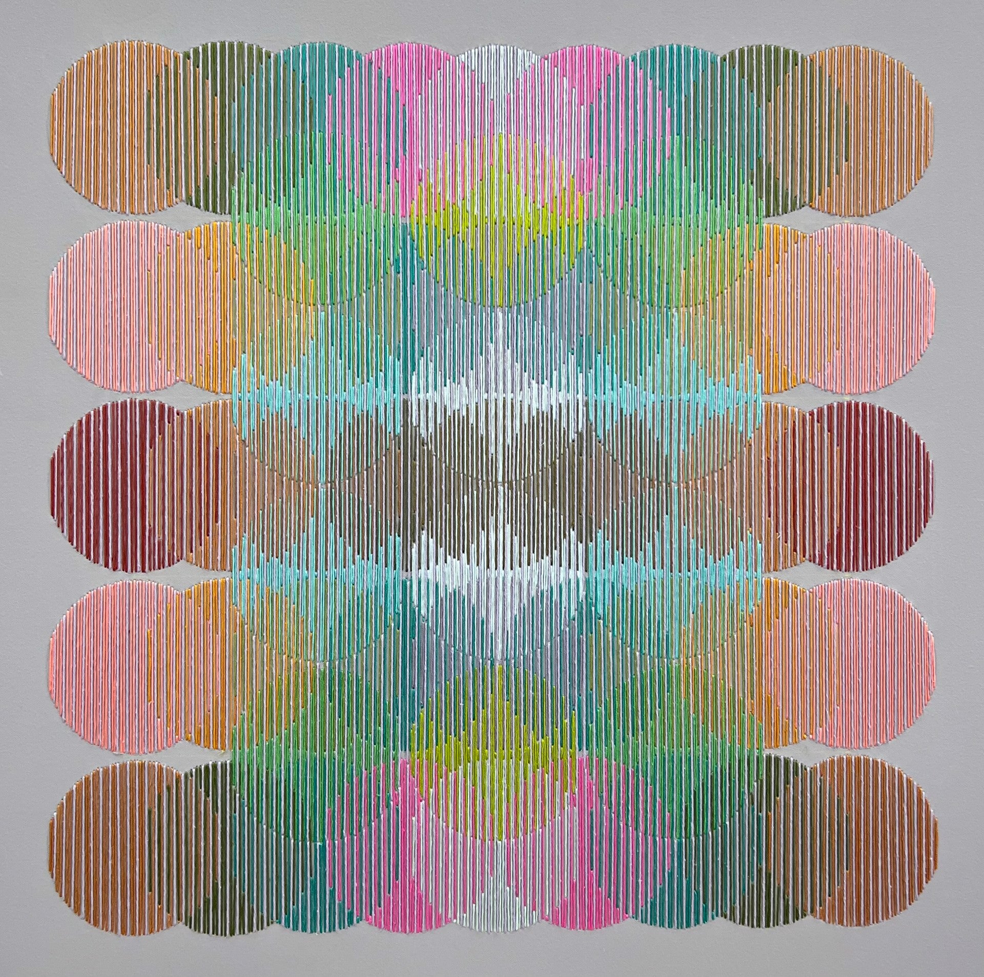 When it comes to creating, there are two universes that particularly inspire Isabella: Kinetic Art, especially the artists Cruz Diez and Jesús Soto, and embroidery and its feminine tradition. Isabella combines these two universes. She takes the legacy of these artists and translates it with lines and the imperfections of manual work. Her main objective has to do with extending or expanding what we know as embroidery and its characteristics, which are often figurative images, utilitarian, and domestic, and combining it with kinetic art to elevate it, so that it ceases to be a craft and instead, becomes fine art.