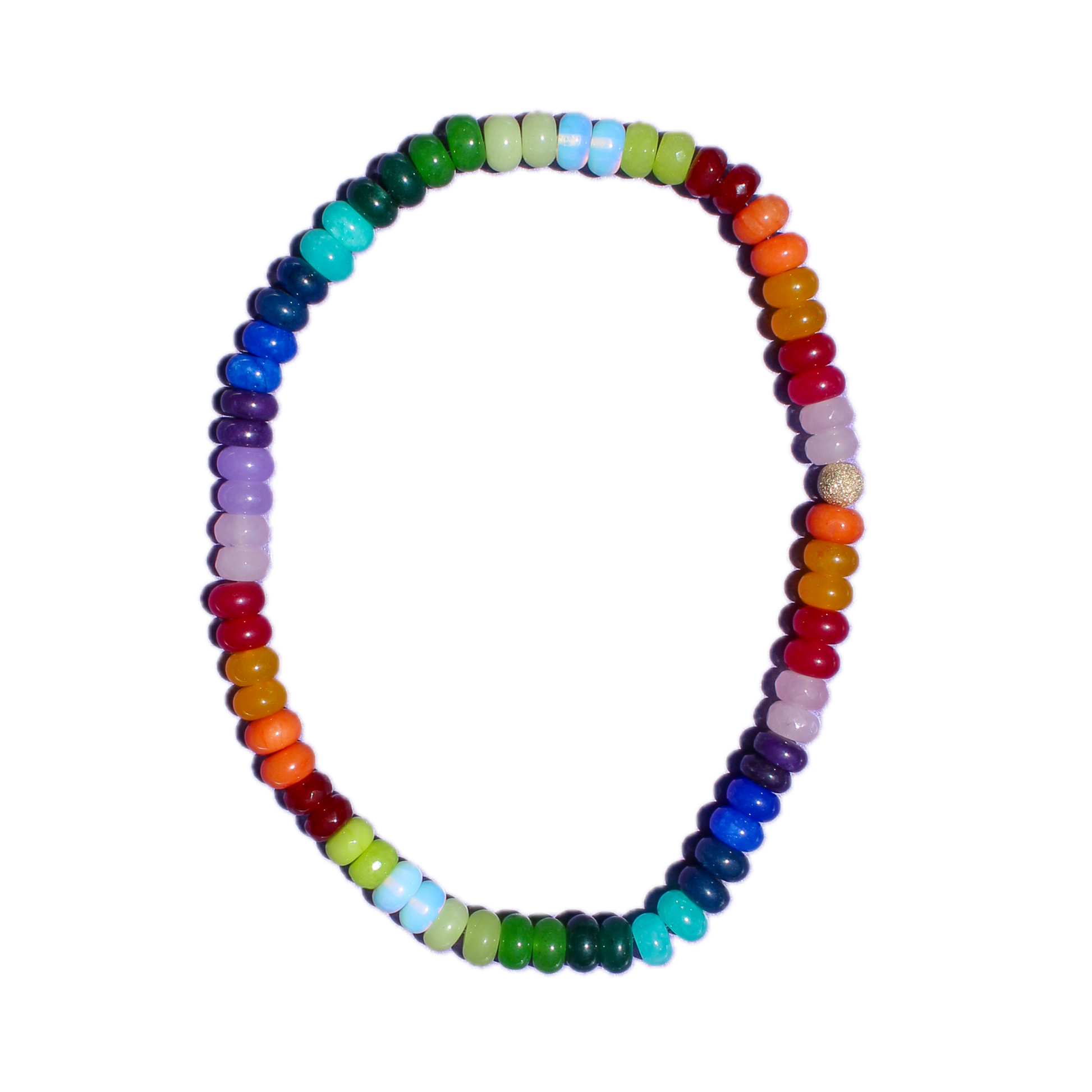 Seally Mimi makes playful, colorful bracelets and chokers made from smooth, semiprecious stones. Each piece is handmade in Switzerland, and the stones are charged with a specific "Seally Energy" to encourage wellness for the wearer. These are intended to stack, mix, match, or wear alone.