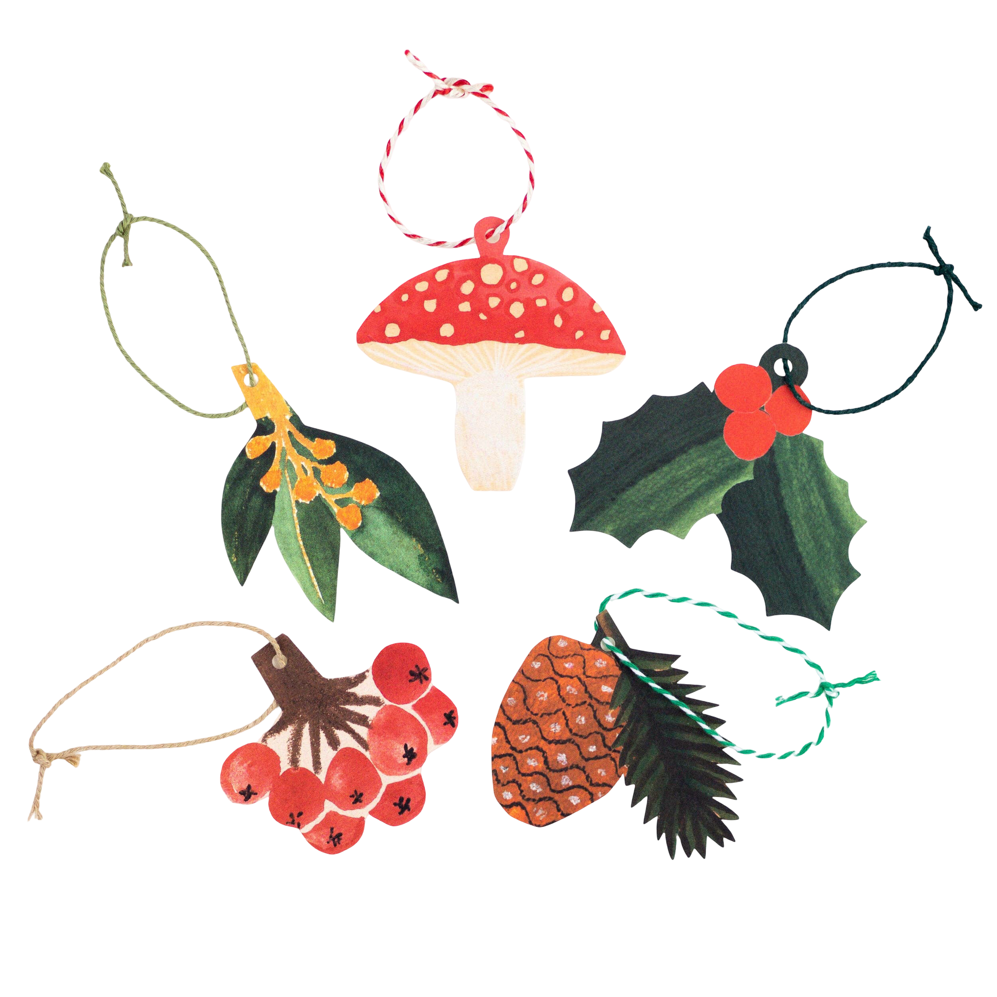 A set of 5 festive gift tags, inspired by nature. Each design hand-collaged and painted, with lovely attention to detail.