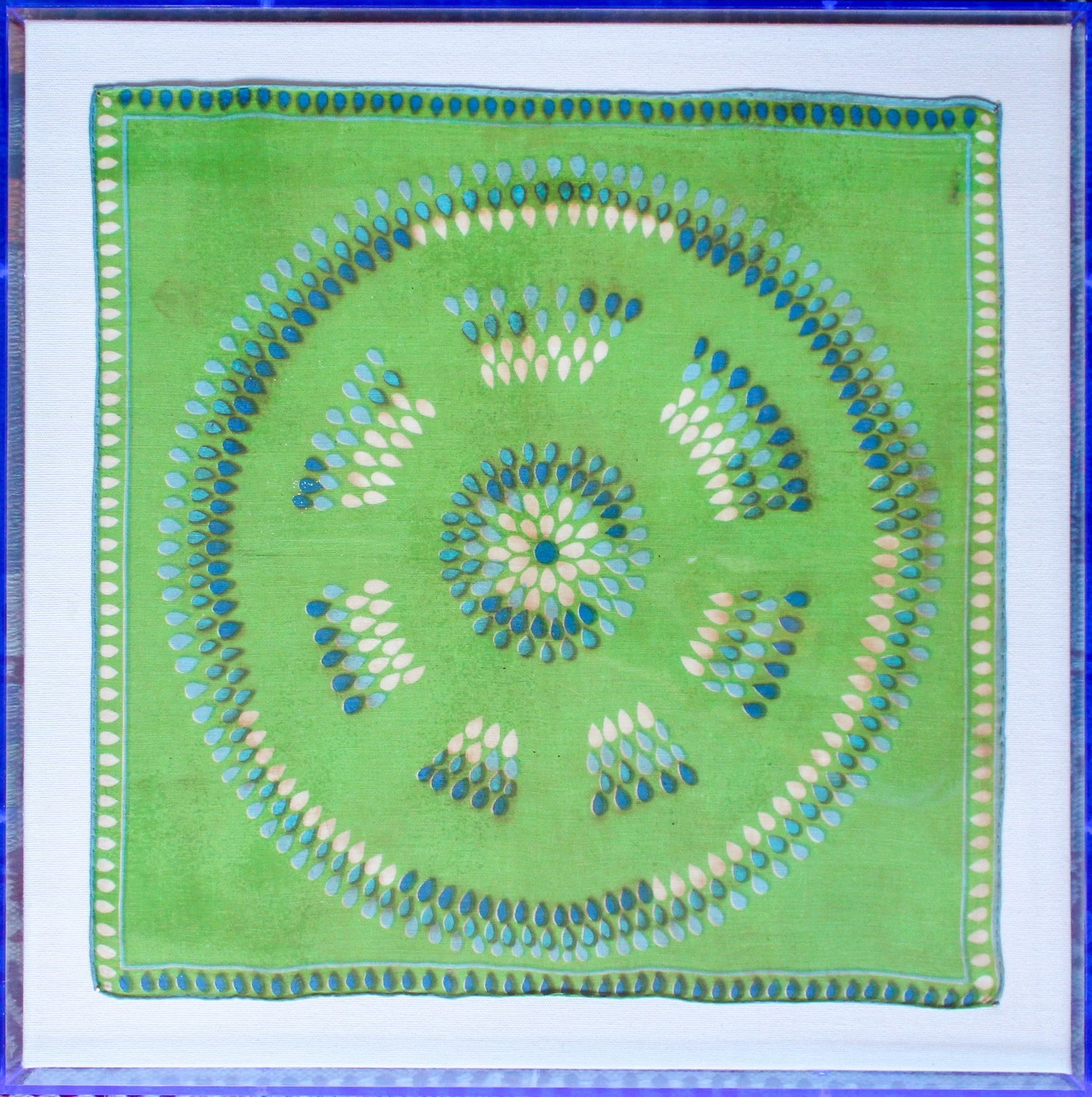 Framed Mid Century Handkerchief - Green & Blue Circle