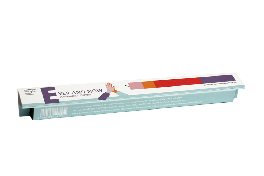 A gift, congratulations or a greeting - we have the right candle for every theme, individually packaged in a colored cardboard box. The candle is made of dyed wax - layer by layer of color is painstakingly poured by hand during production. The packaging is printed and processed in Hamburg in a climate-neutral way on FSC-certified, open design paper.