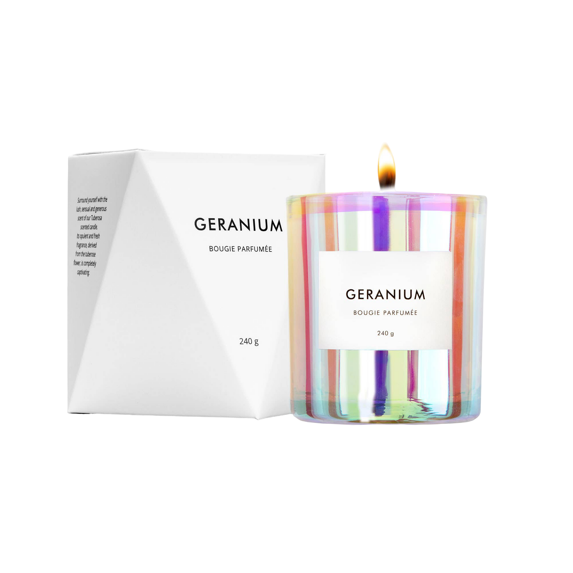 The Geranium Candle: The beautiful, slightly lemony and bright green scent of our Geranium Candle is artfully poised between strength and subtlety. A vibrant, uplifting and distinctly contemporary fragrance.