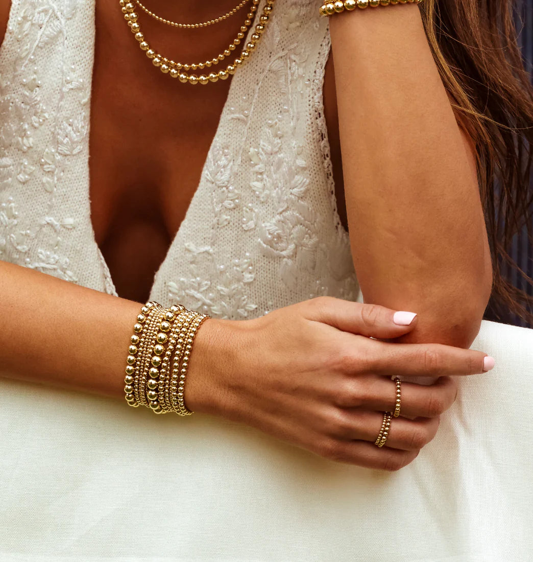 These gold filled bead stretchy bracelets are made in Los Angeles, CA. You can wear them anytime & anywhere.