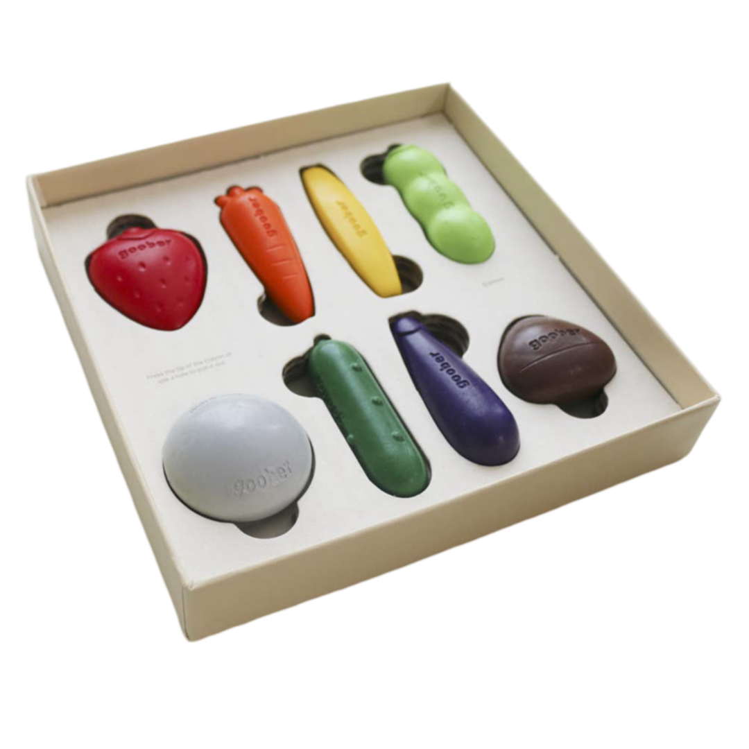 These 8 crayons come in shapes and colors of strawberry, carrot, banana, pea, cucumber, egg plant, chestnut and mushroom in a beautifully designed storage box.