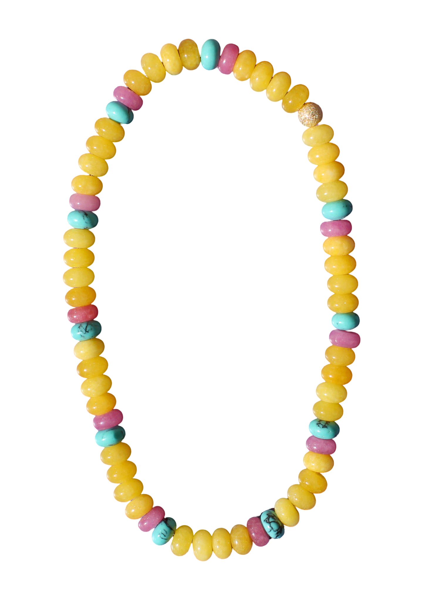 - All necklaces include semi-precious stones and 14k gold plated bead