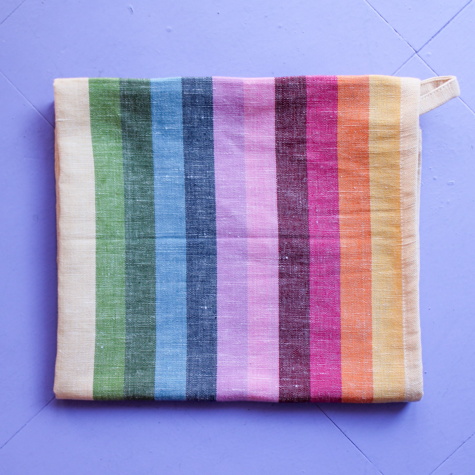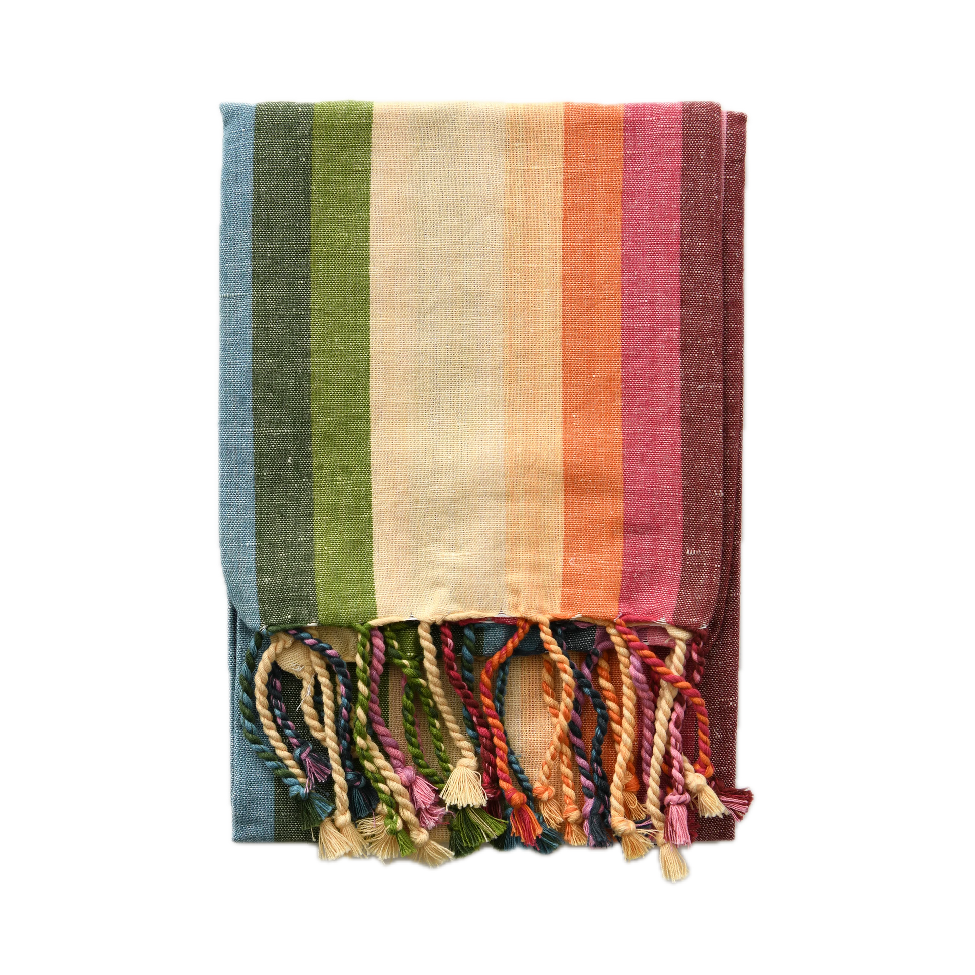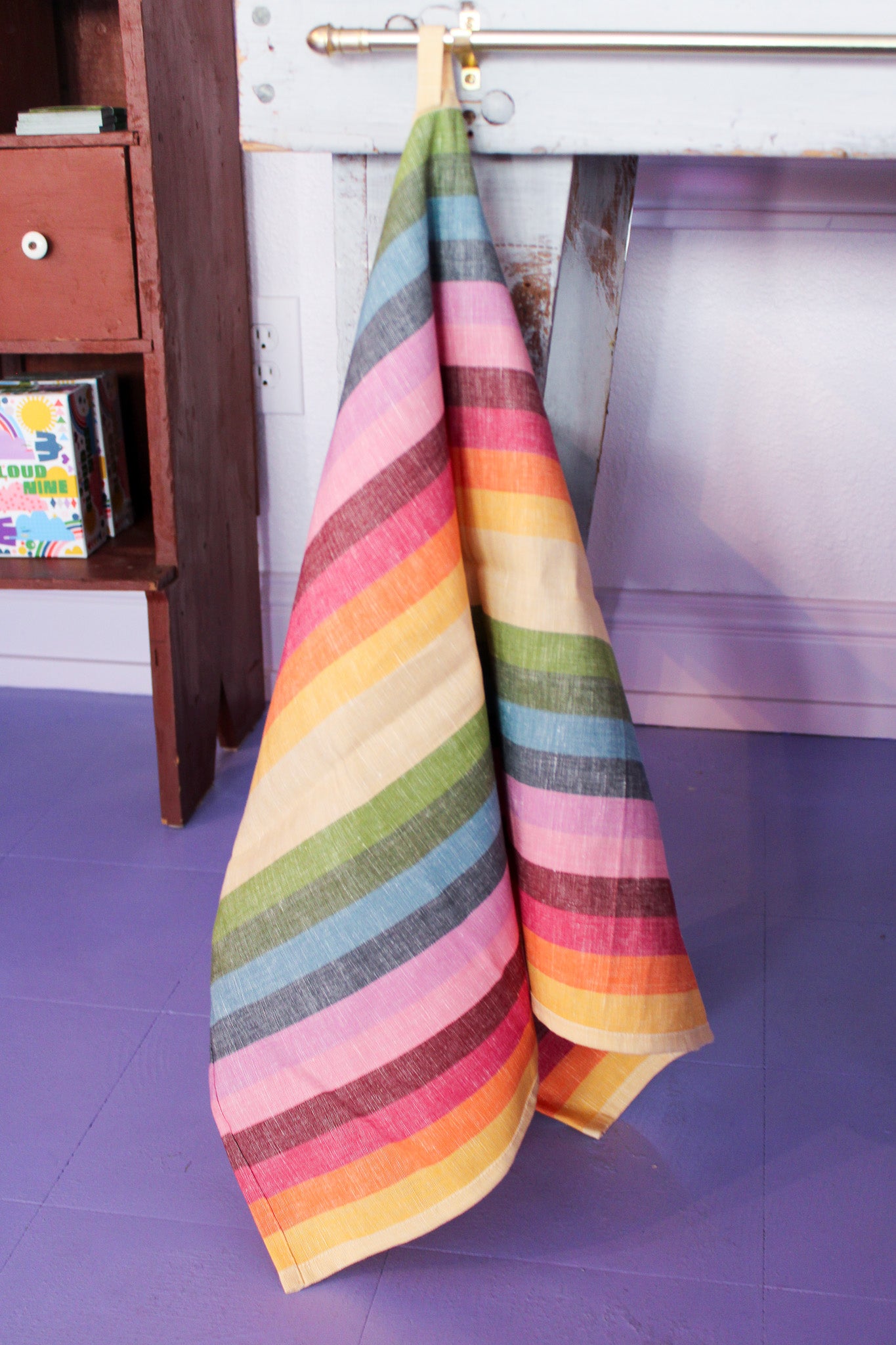 Hand-spun yarn lends itself to a luxe, vintage feel. The linen / cotton weave is very absorbent and will get softer with every wash.