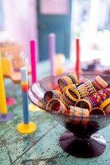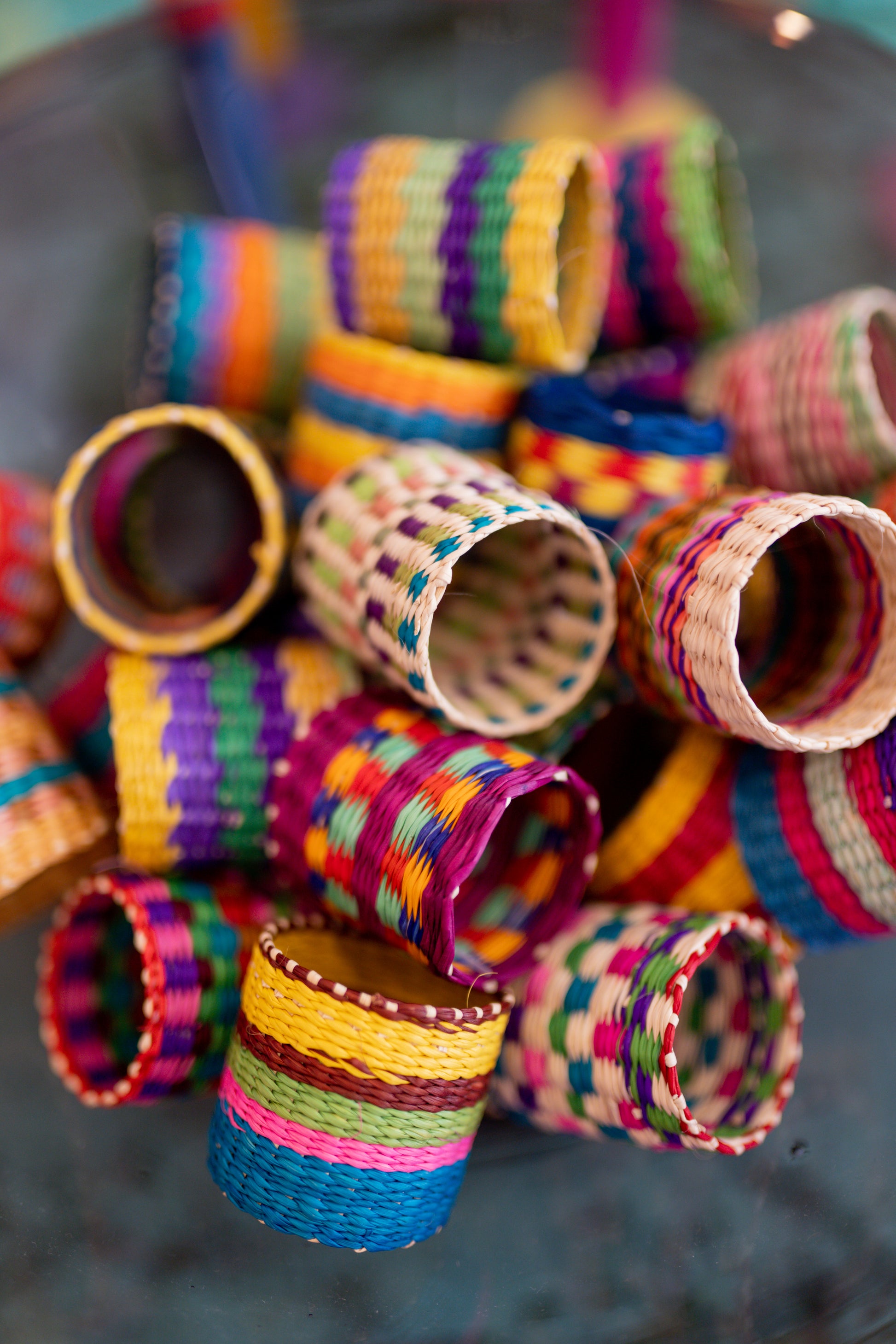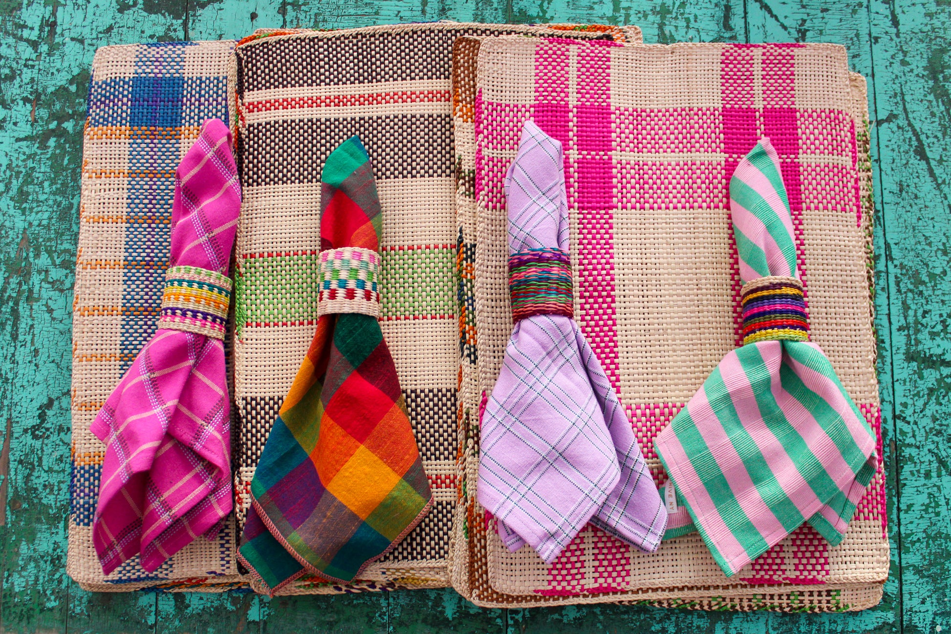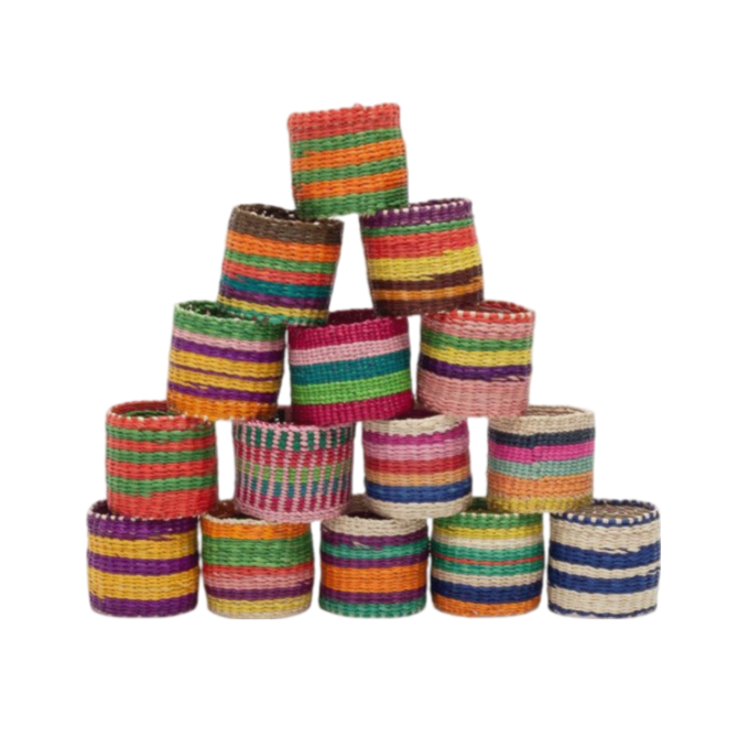 No two are exactly alike!! Multicolor and mixed patterned woven tube napkin rings.