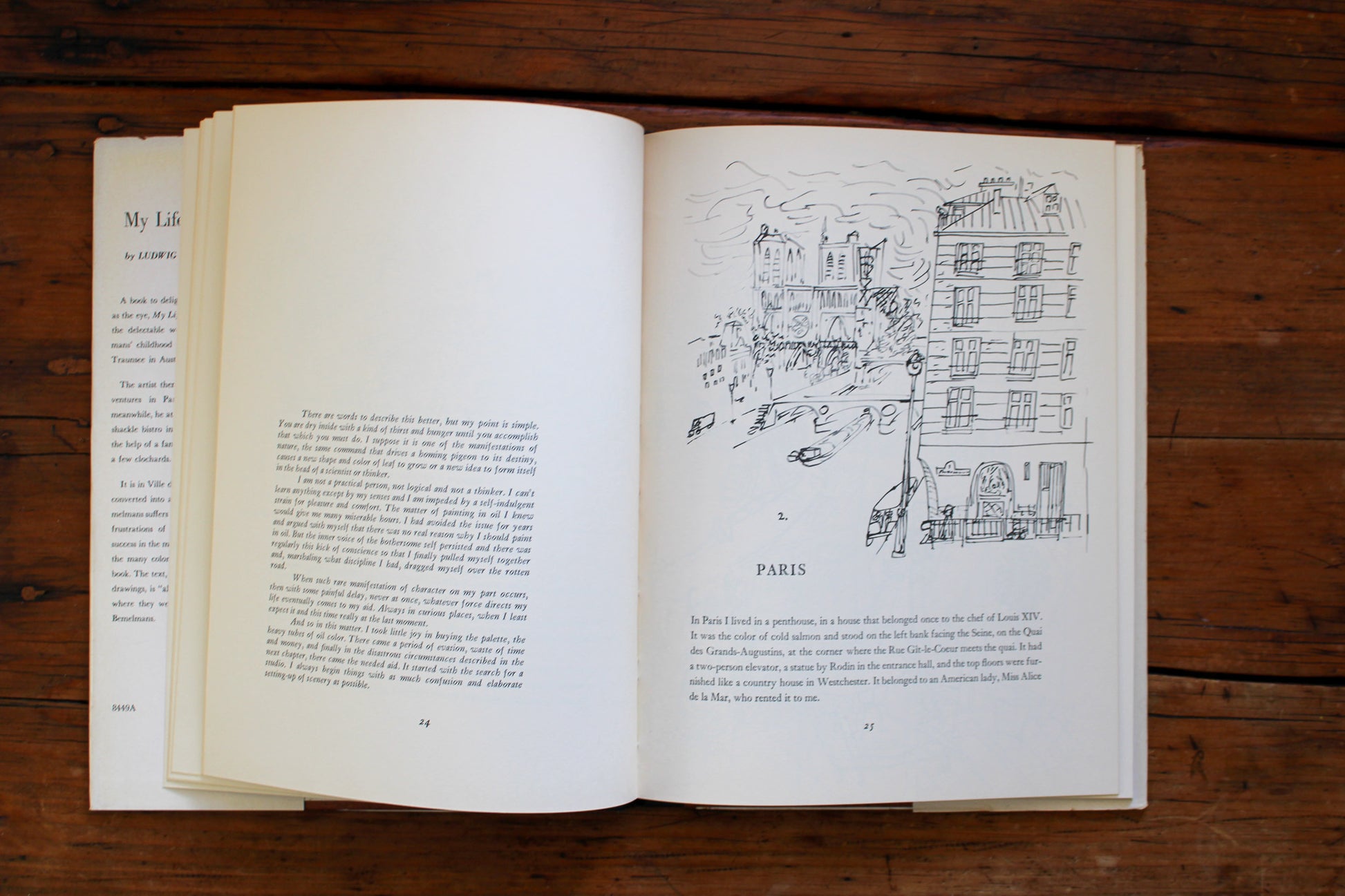 A book to delight the spirit as well as the eye, My Life in Art begins with the delectable world of Mr. Bemelman's childhood on the shore of the Traunsee in Austria. The artist then recounts his misadventures in Paris where, while painting, he attempts to turn a ramshackle bistro into a smart café with the help of a famous restaurateur and a few clochards. In Ville d'Avray, in an old ruin converted into a studio, Mr. Bemelmans suffers the initial despairs and frustrations of a painting in oils. His success in the medium is attested to by the many color reproductions in this book.