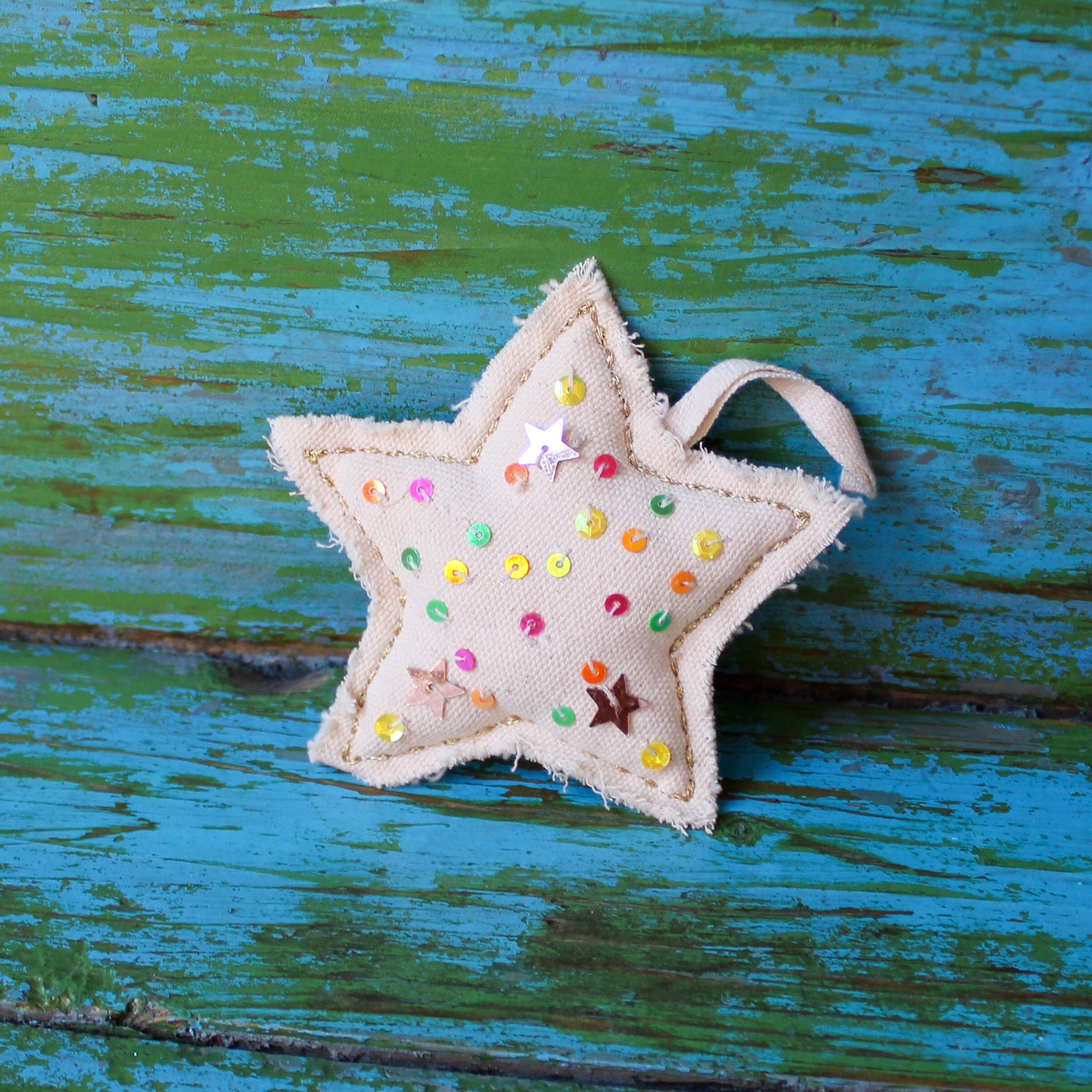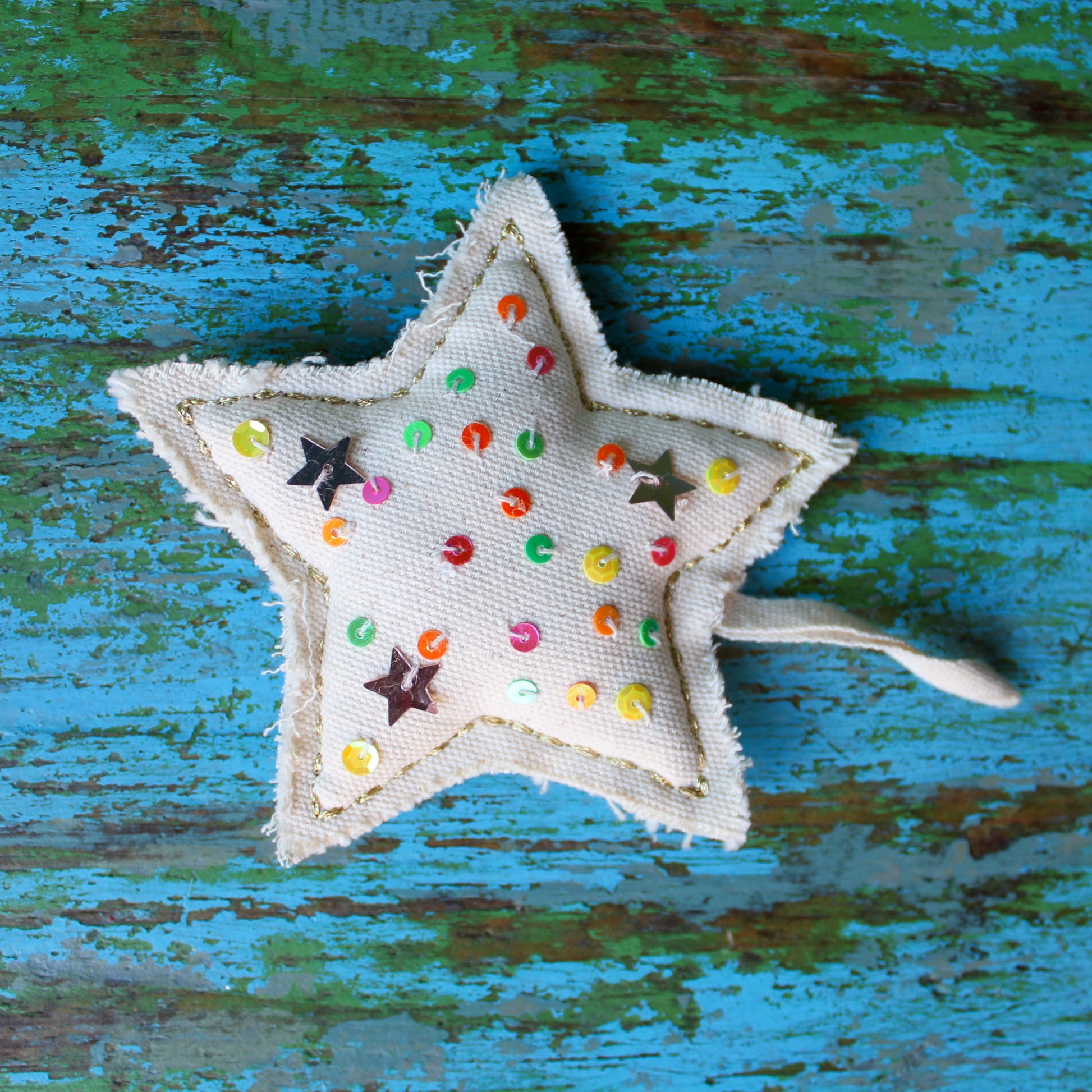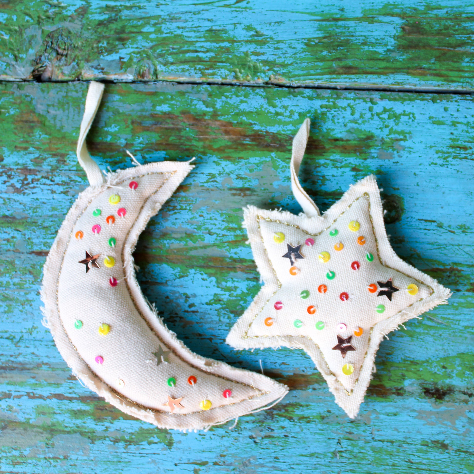 Each scented ornament is hand illustrated and embroidered using vibrant polyester threads on assorted linens. Each ornament is hand cut, turned, and stuffed with organic cotton and lavender.
