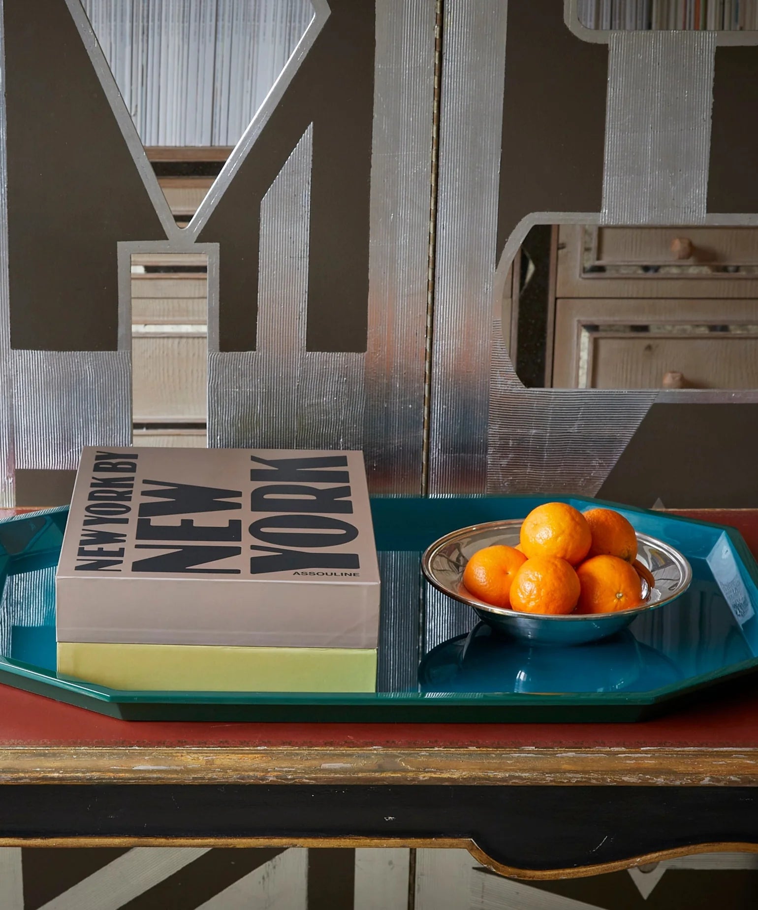 Handmade high gloss lacquer octagonal tray whose planes and angles are reminiscent of an emerald cut and thus it just sparkles a little bit more. Designed in London by Miles Redd x The Lacquer Company.