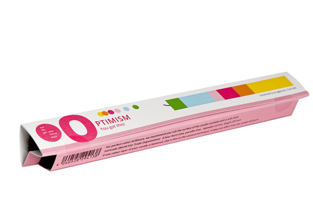A gift, congratulations or a greeting - we have the right candle for every theme, individually packaged in a colored cardboard box. The candle is made of dyed wax - layer by layer of color is painstakingly poured by hand during production. The packaging is printed and processed in Hamburg in a climate-neutral way on FSC-certified, open design paper.