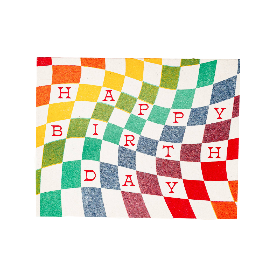 Say a fabulous "Happy Birthday!" with this bright and playful wavy checkboard card.