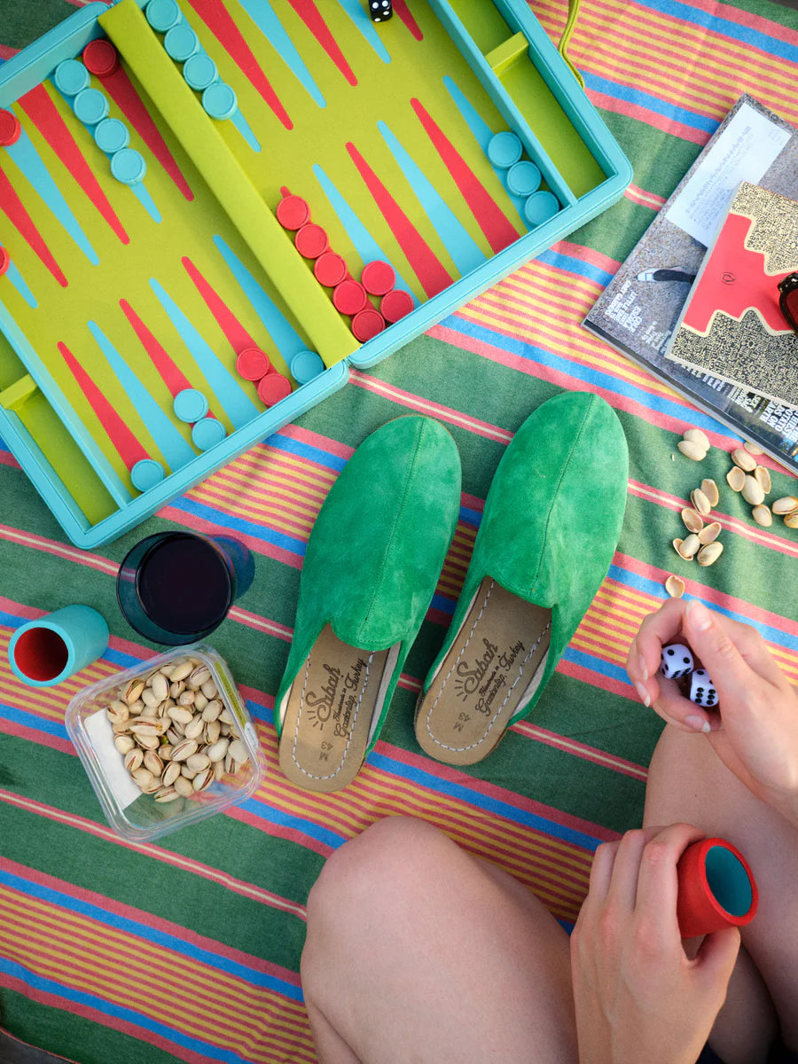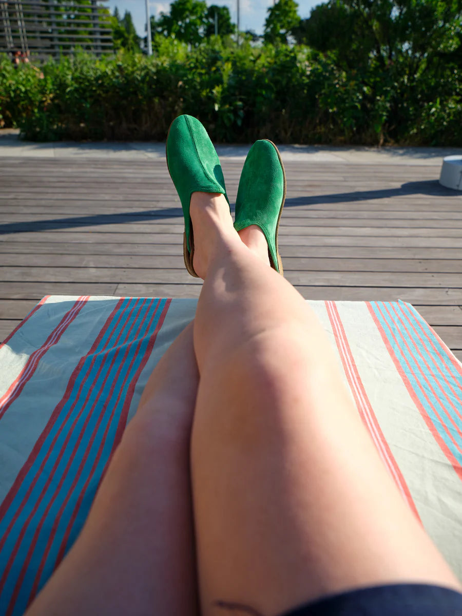 A fresh new suede for summer -- the Seneca Baba is crafted with our proprietary, high quality, suede in a striking yet versatile green hue that will pair perfectly with the warmer days ahead. Easy to style and even easier to wear, these Babas can be your companion for the long summer days to come. Enjoy!