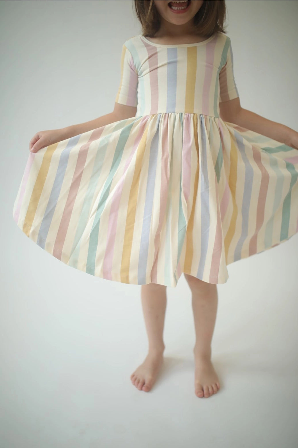 Made with stretchy-soft organic cotton and features a scooped back, pockets for all their treasures, and a full circle skirt made for twirling.
