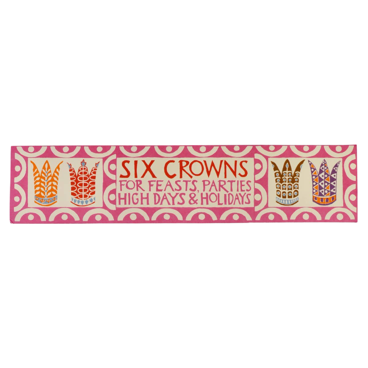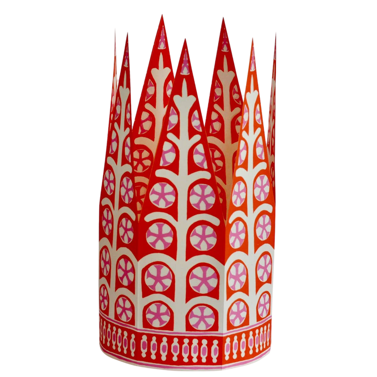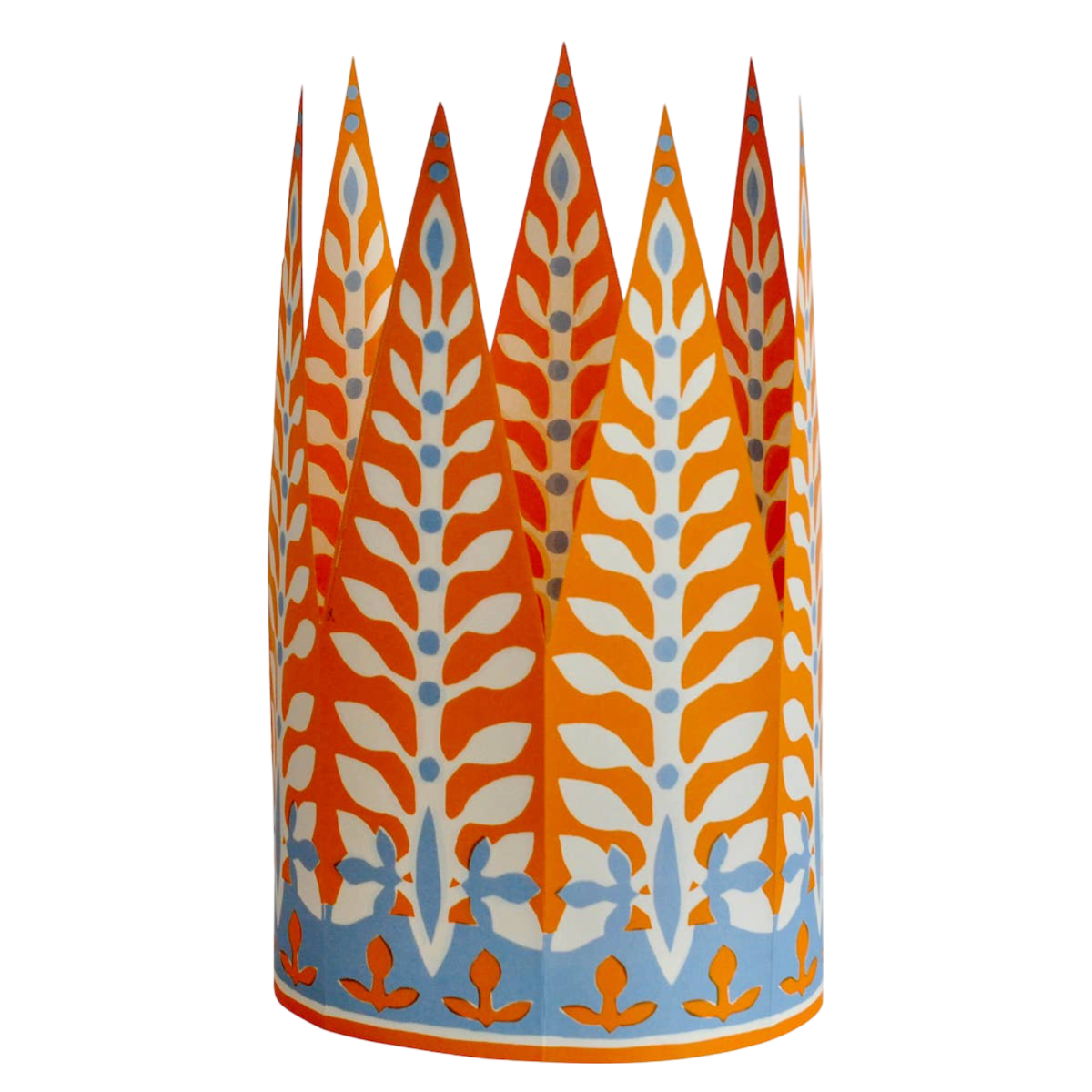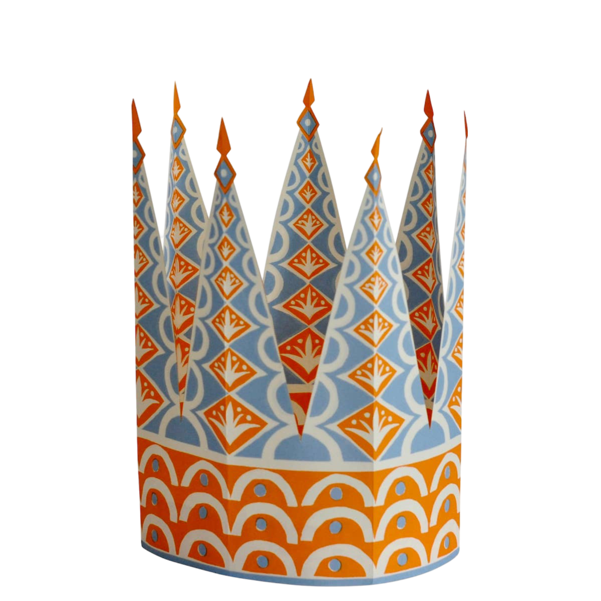 Six tall patterned crowns for feasts, parties, high days and holidays. Six Different Magnificent Designs. Never again will you be satisfied with one of those feeble tissue paper hats that comes out of a cracker. Some minimal assembly is required, and this allows the crown to be adjusted to the size of the wearer's head.