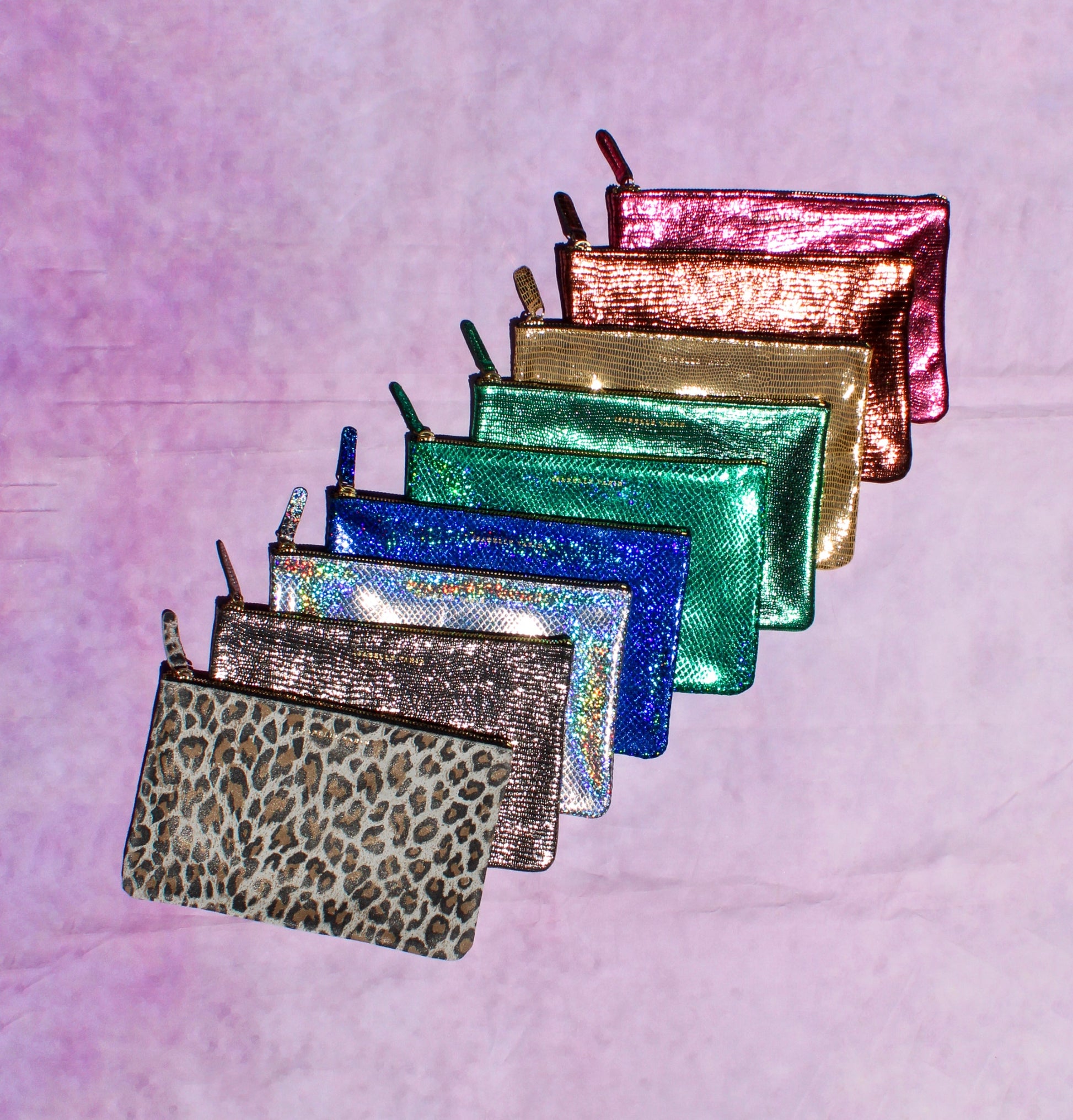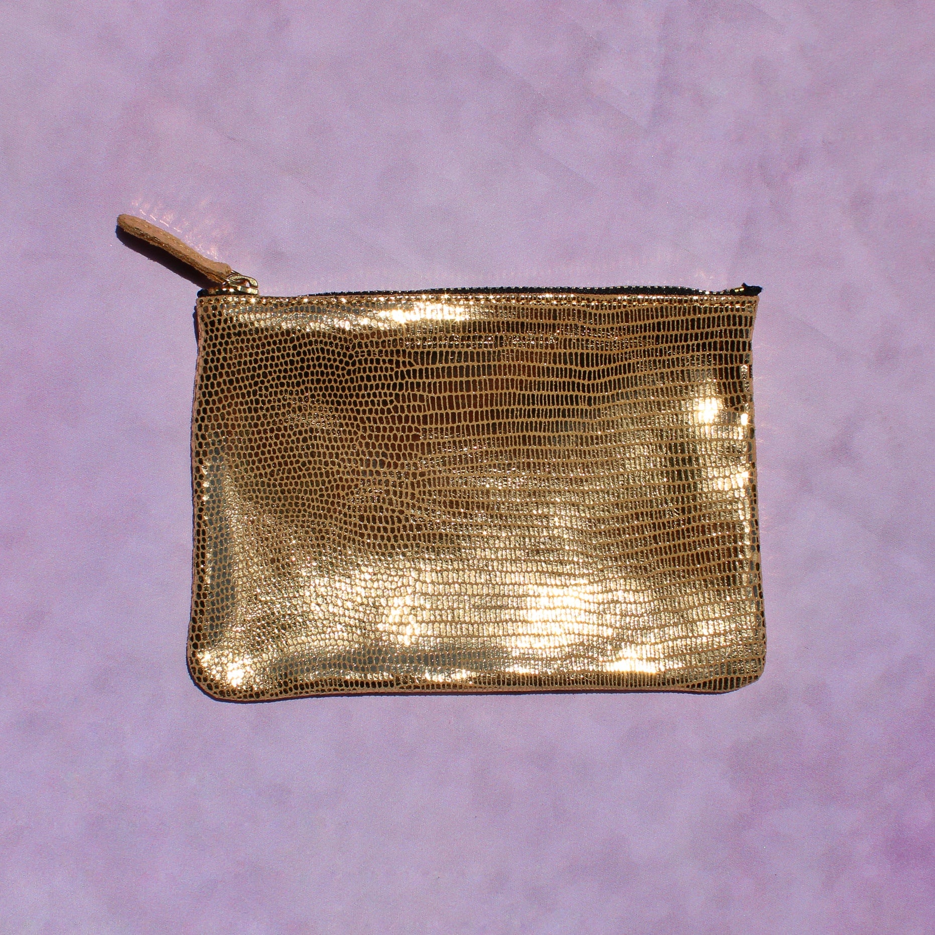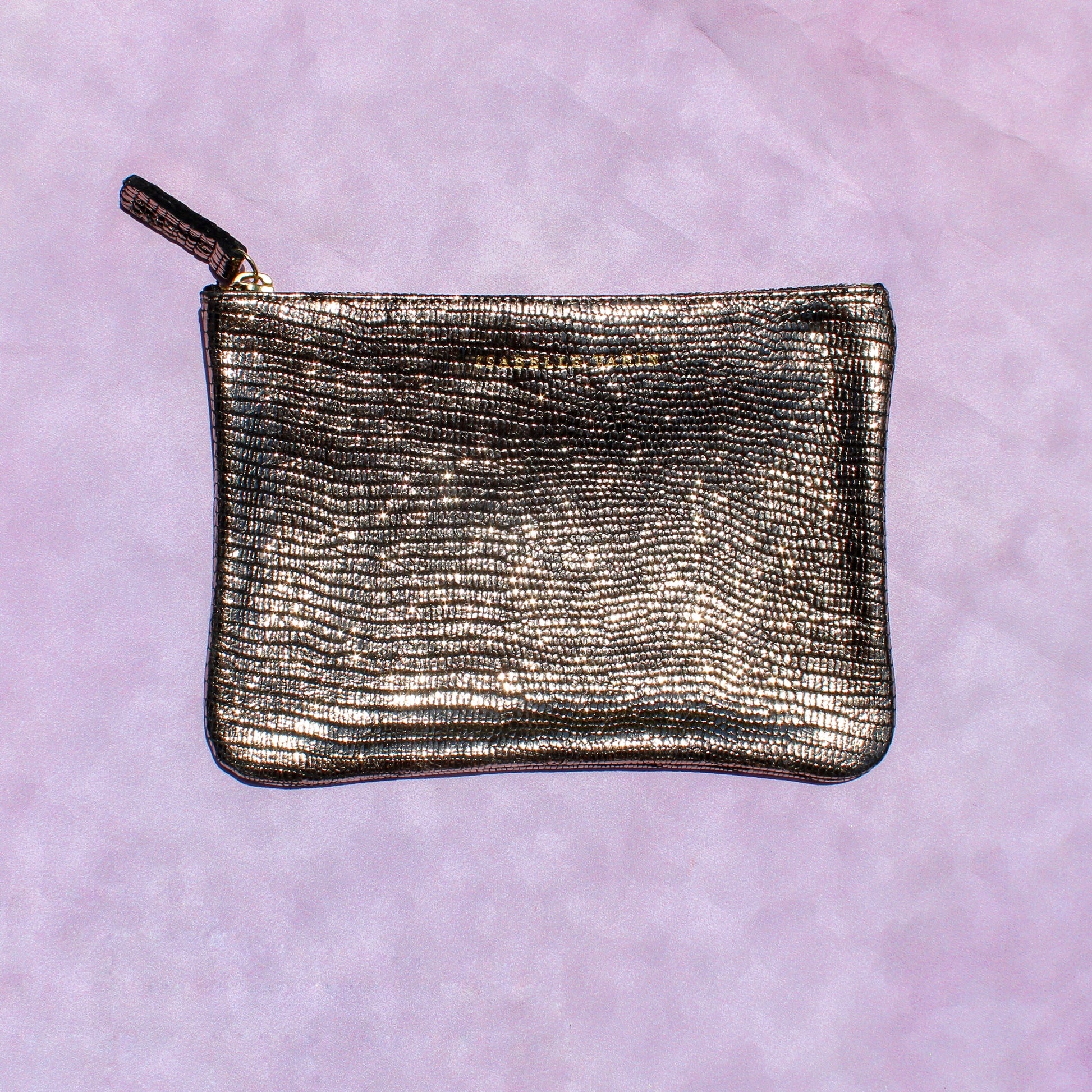 Shimmery metallic leather pouch perfect for all of your on the go essentials - lip calm, lipstick, pens, meds, etc!!