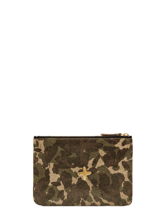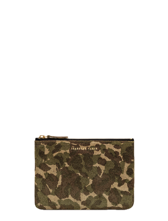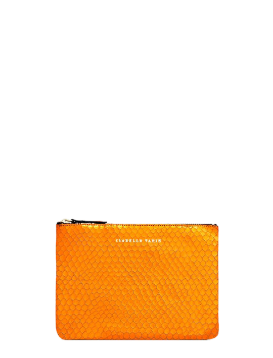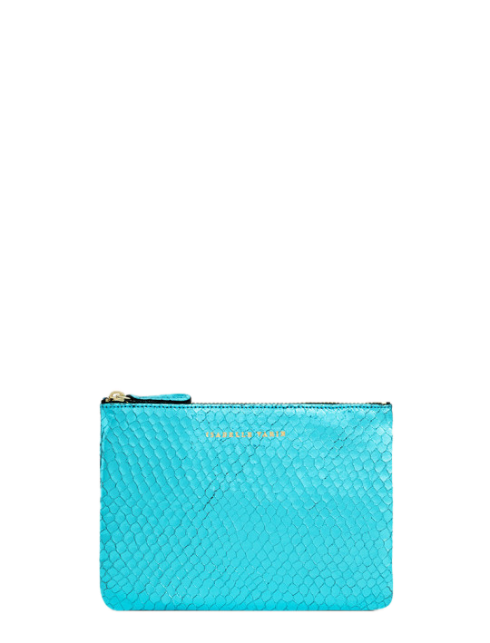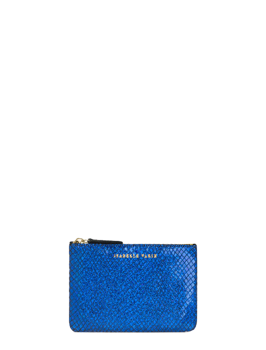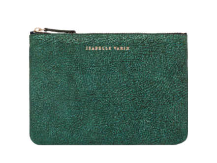 Front side embossed with "Isabelle Varin" in gold lettering, back side has IV's signature gold "X" mark. Zipper closure.