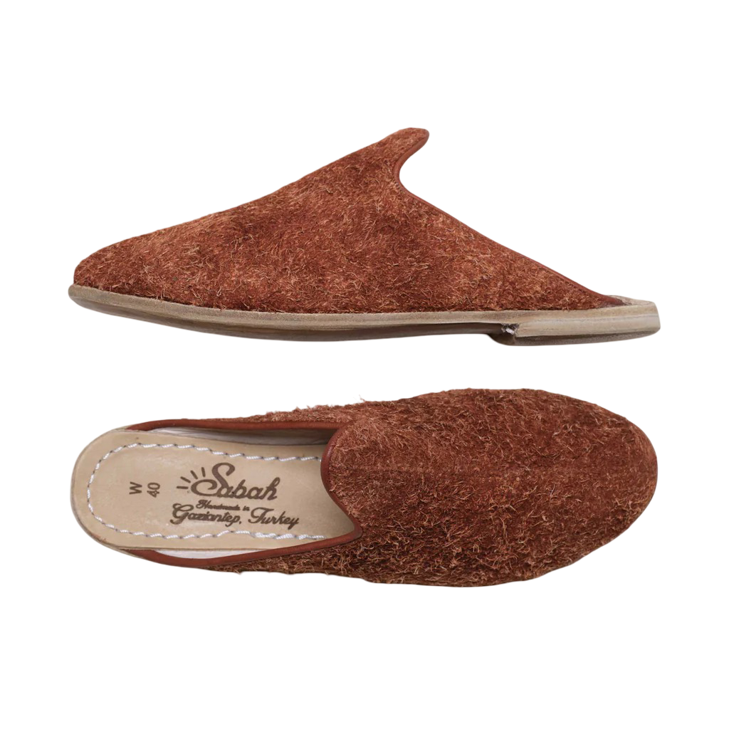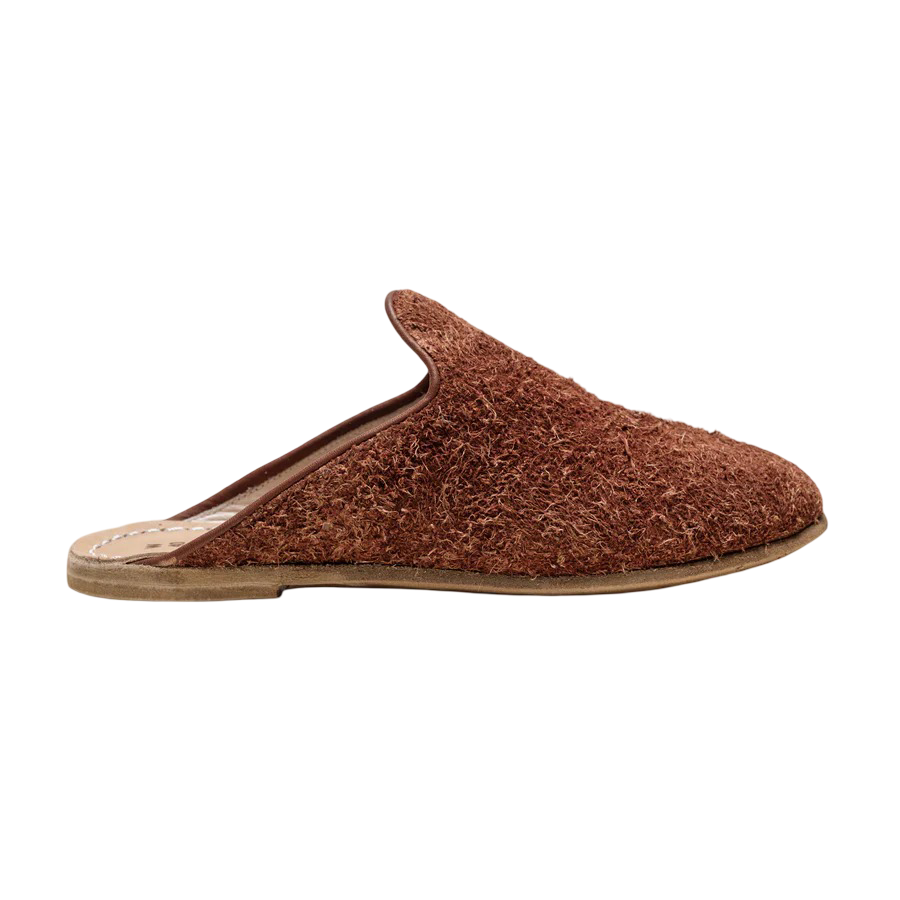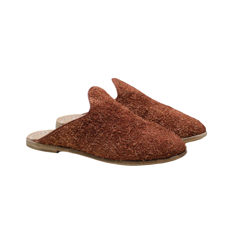 Our fan favorite Tabac leather now in Baba form -- made by turning the rough side out of a robust, brown cow napa leather. Inspired by Western Boot making, the result is a slightly furrier (aka high napped) than usual suede Baba in a sophisticated Tobacco hue.