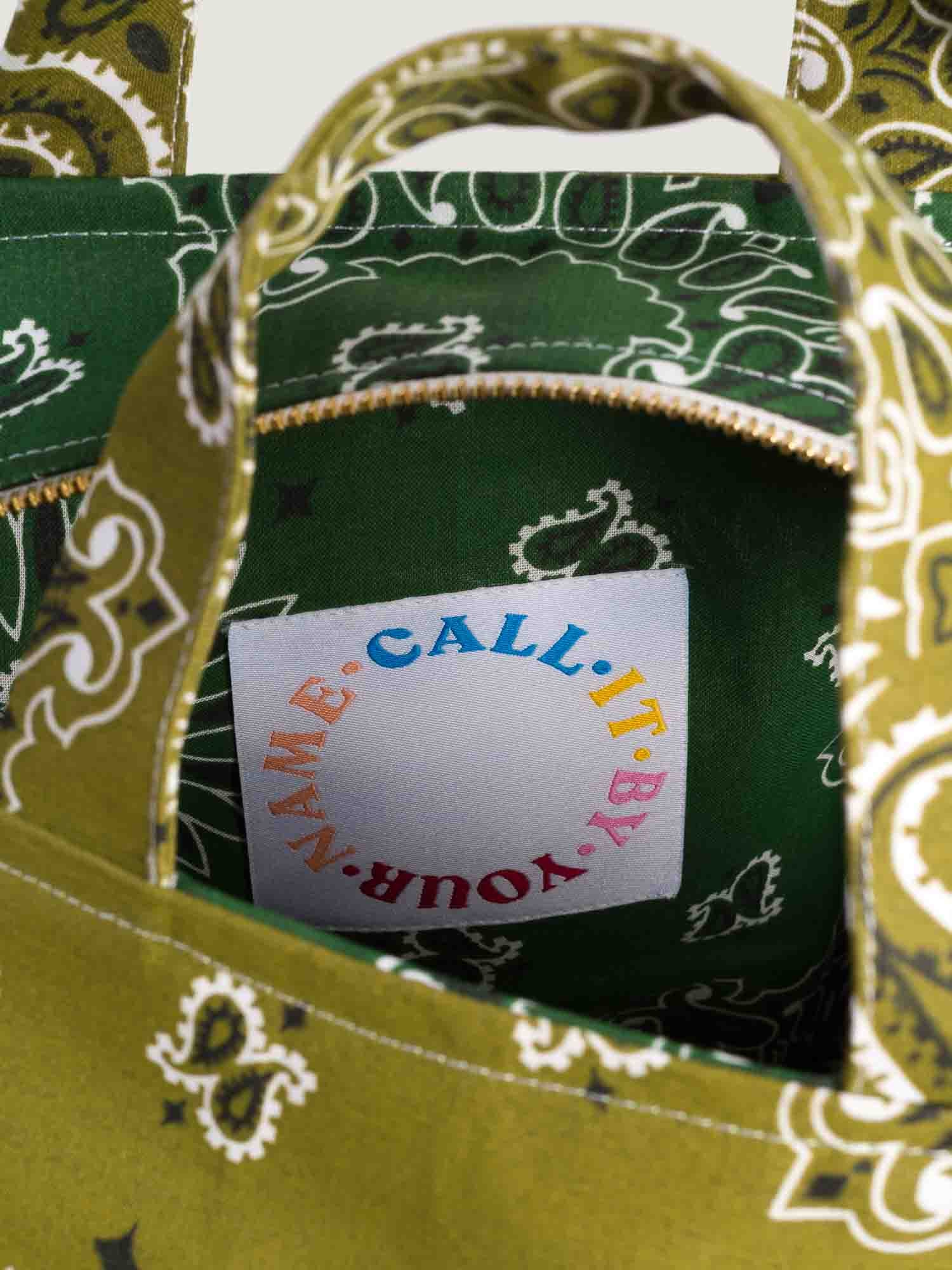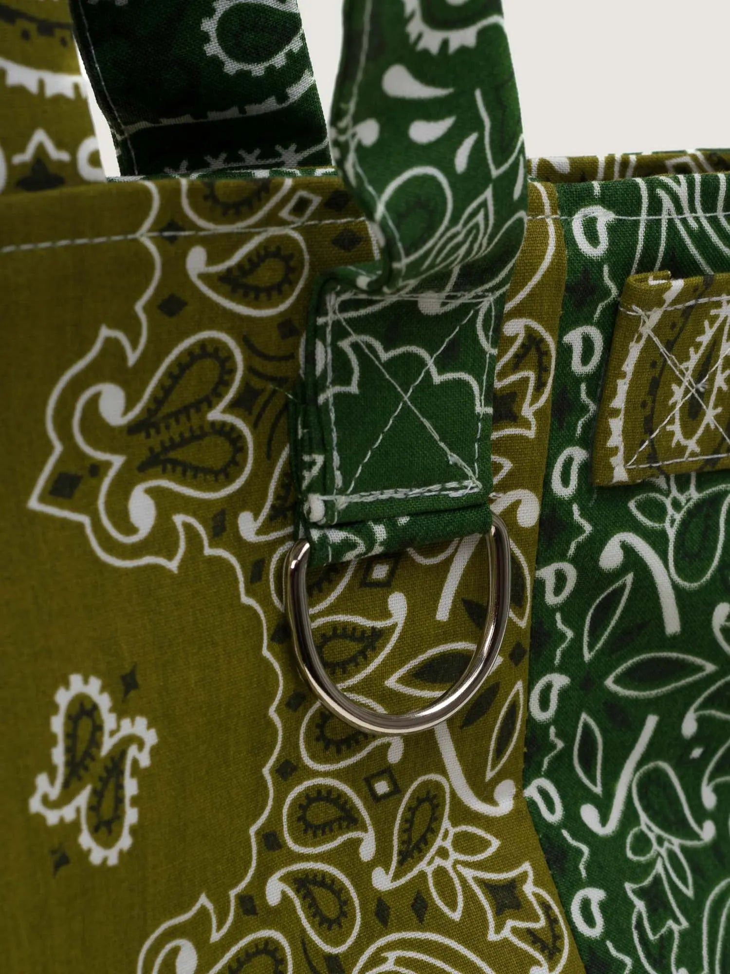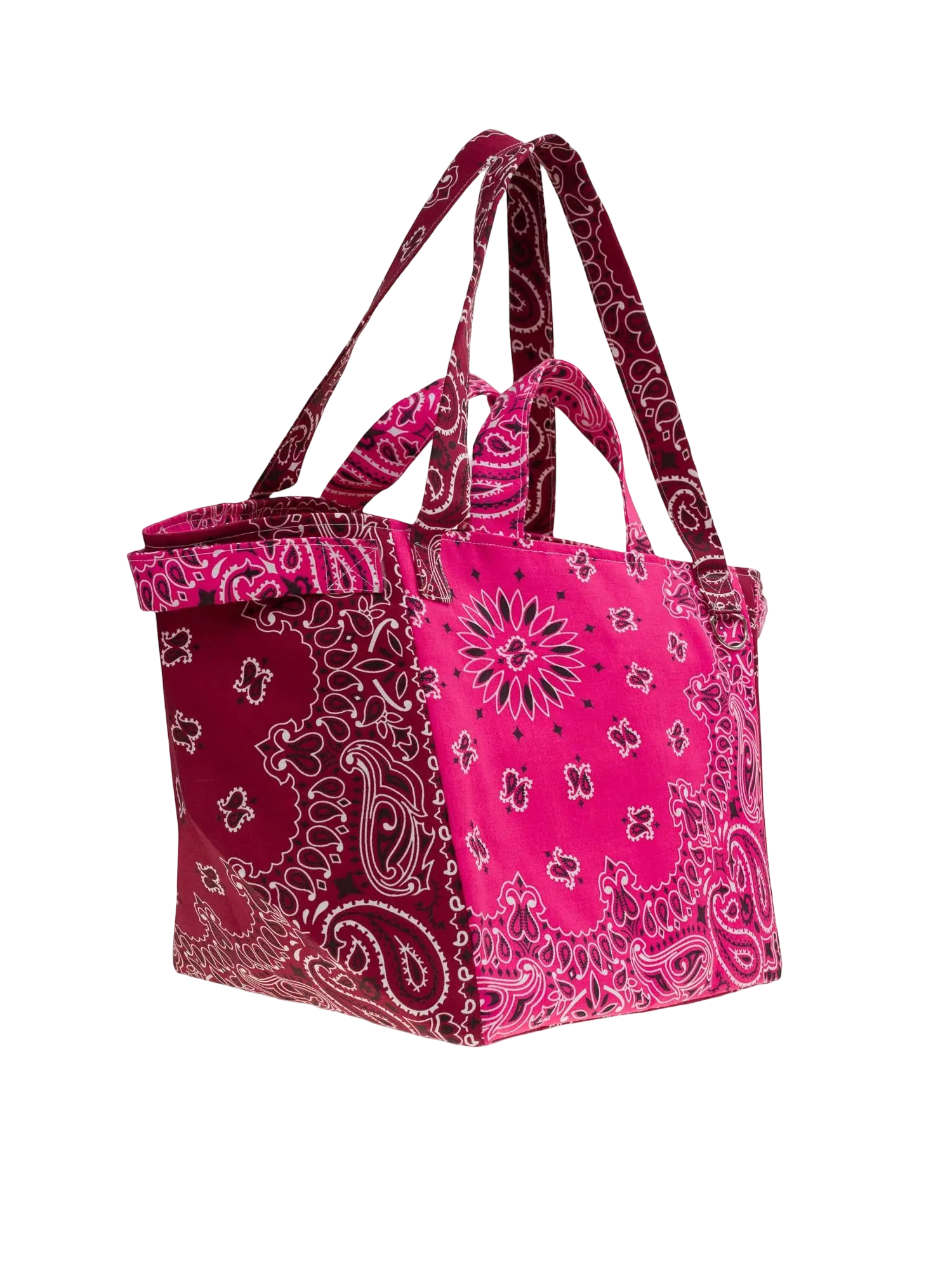 This bag is made from a patchwork of authentic American bandanas and small hand-embroidered motifs.