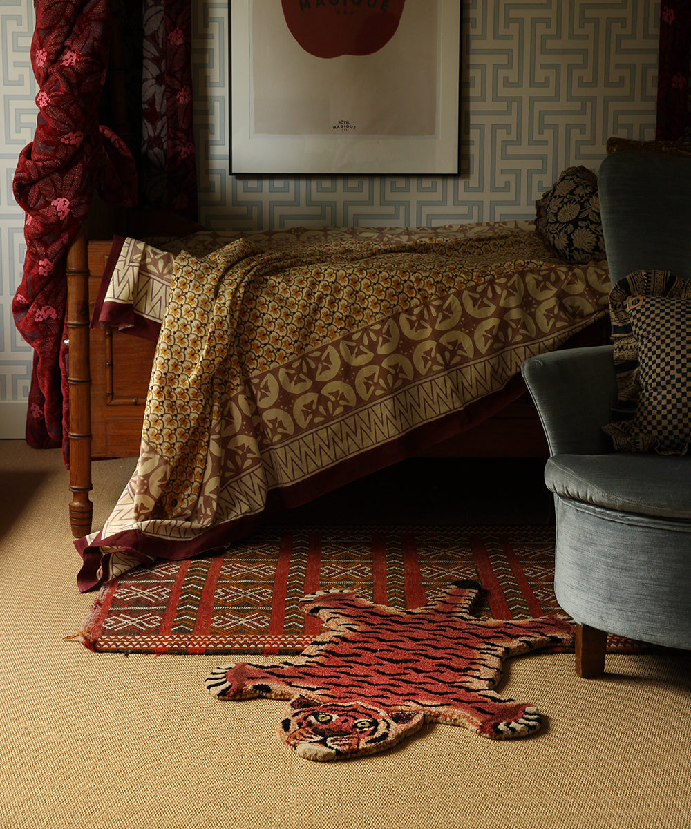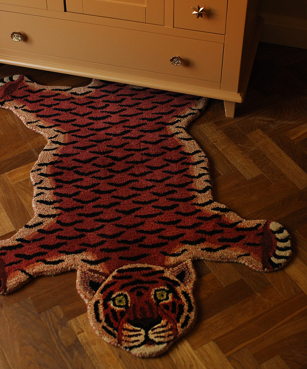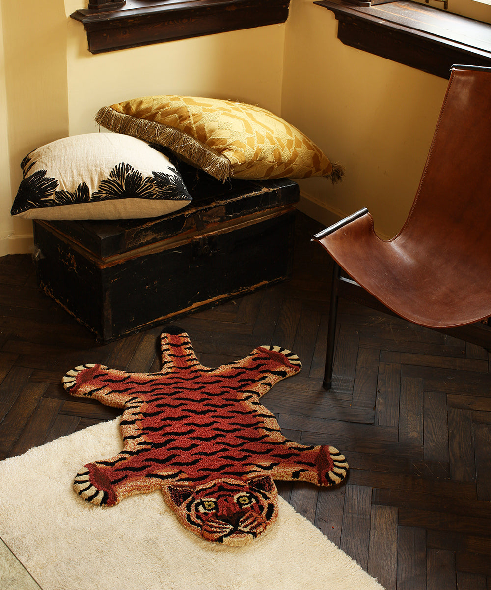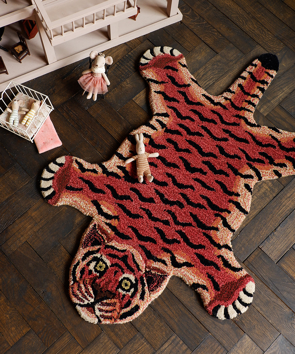 Bring some cheer to your room with this beautifully handmade Tula Wise Tiger Rug.