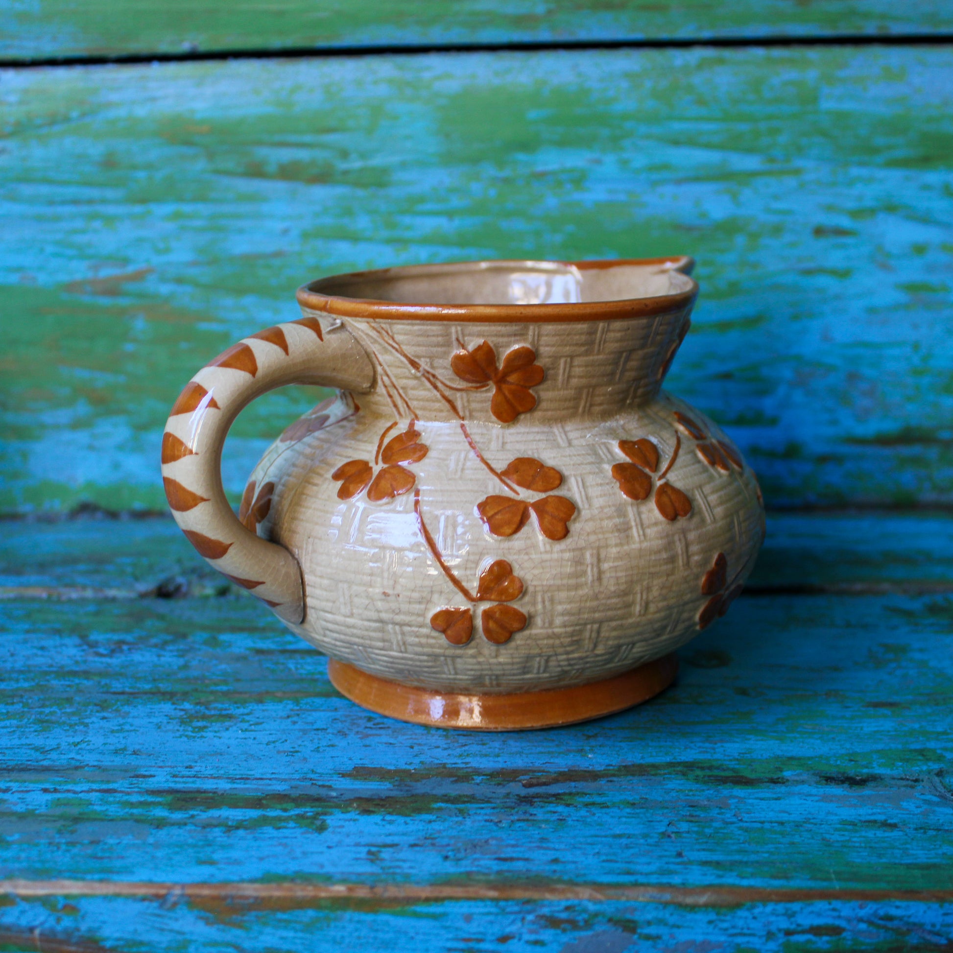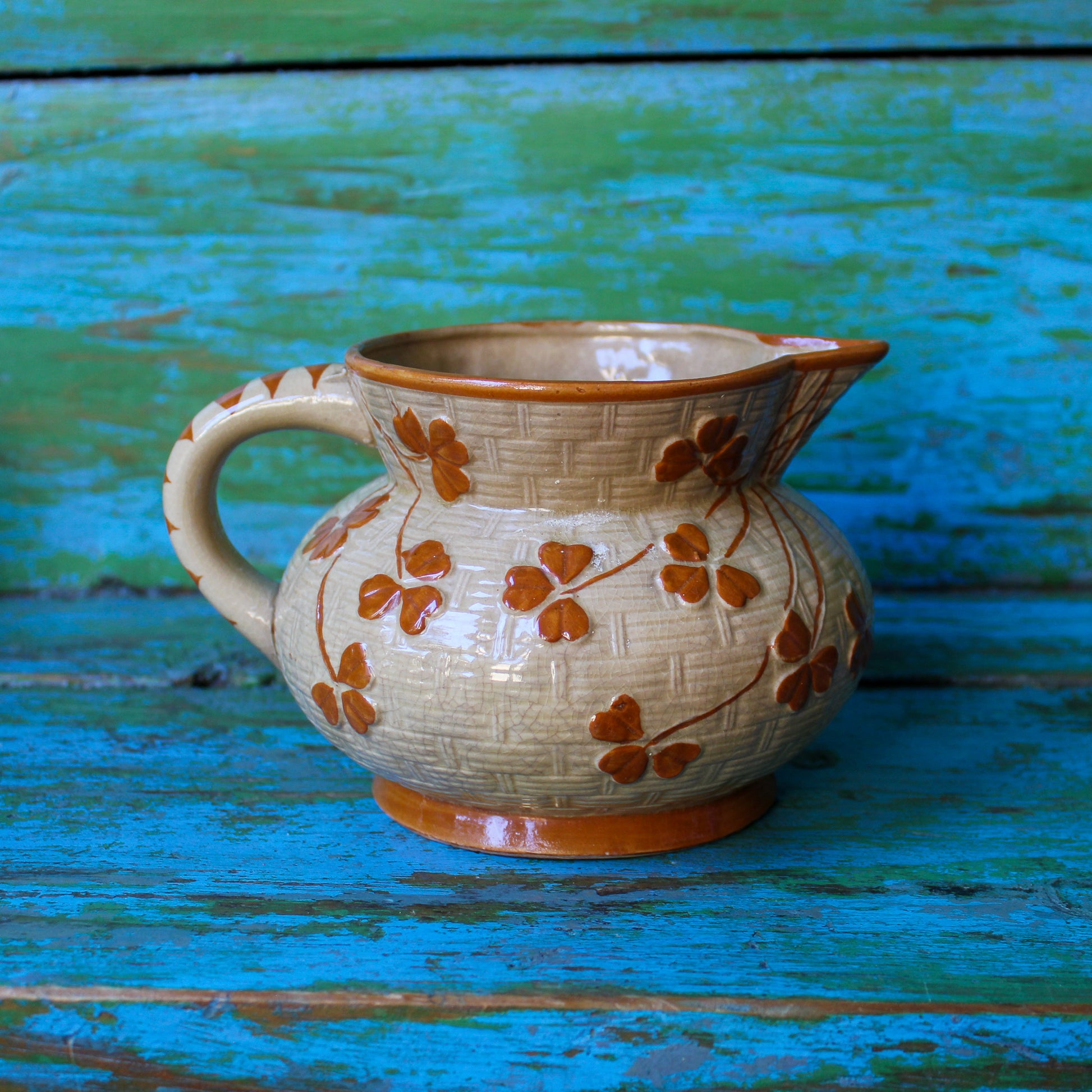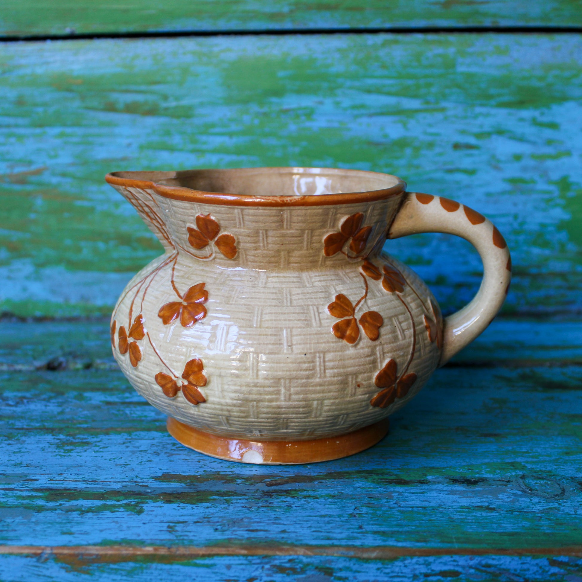Vintage ceramic clover pitcher with triange detail on handle. Made in Japan.