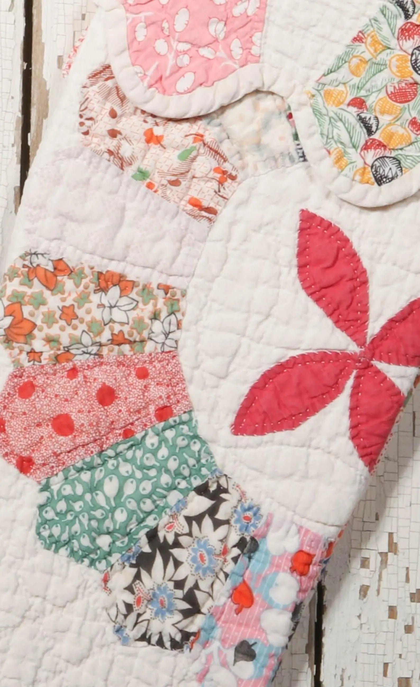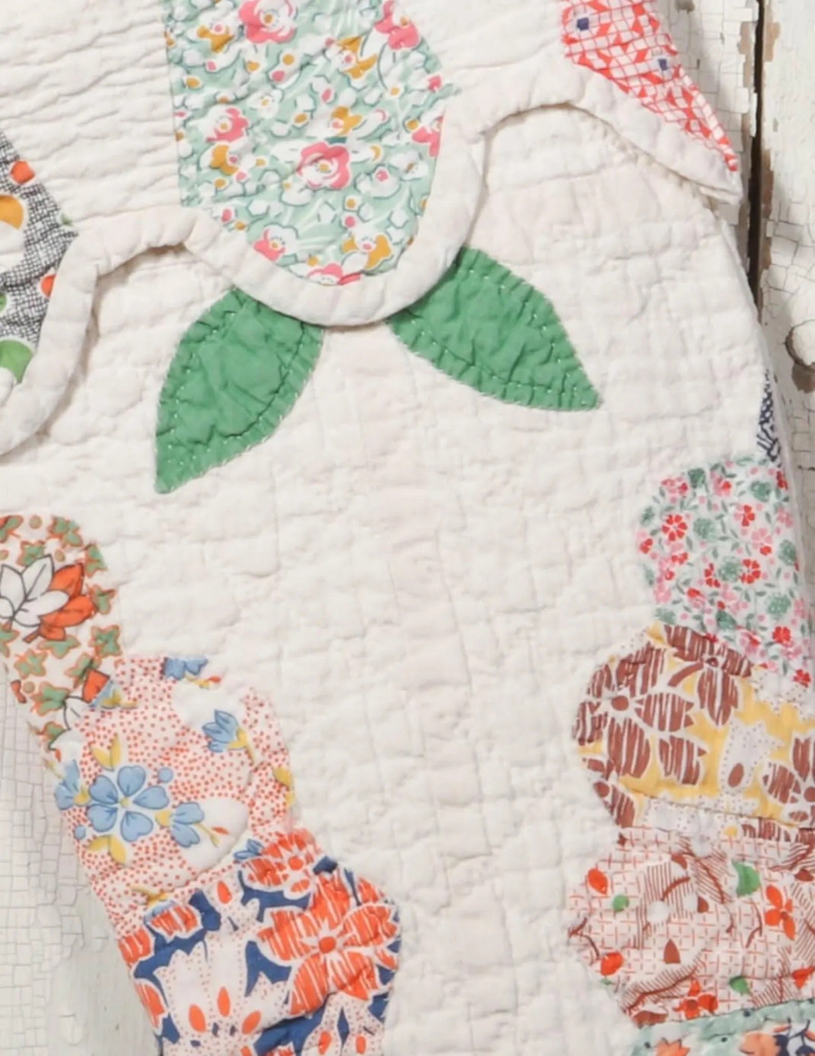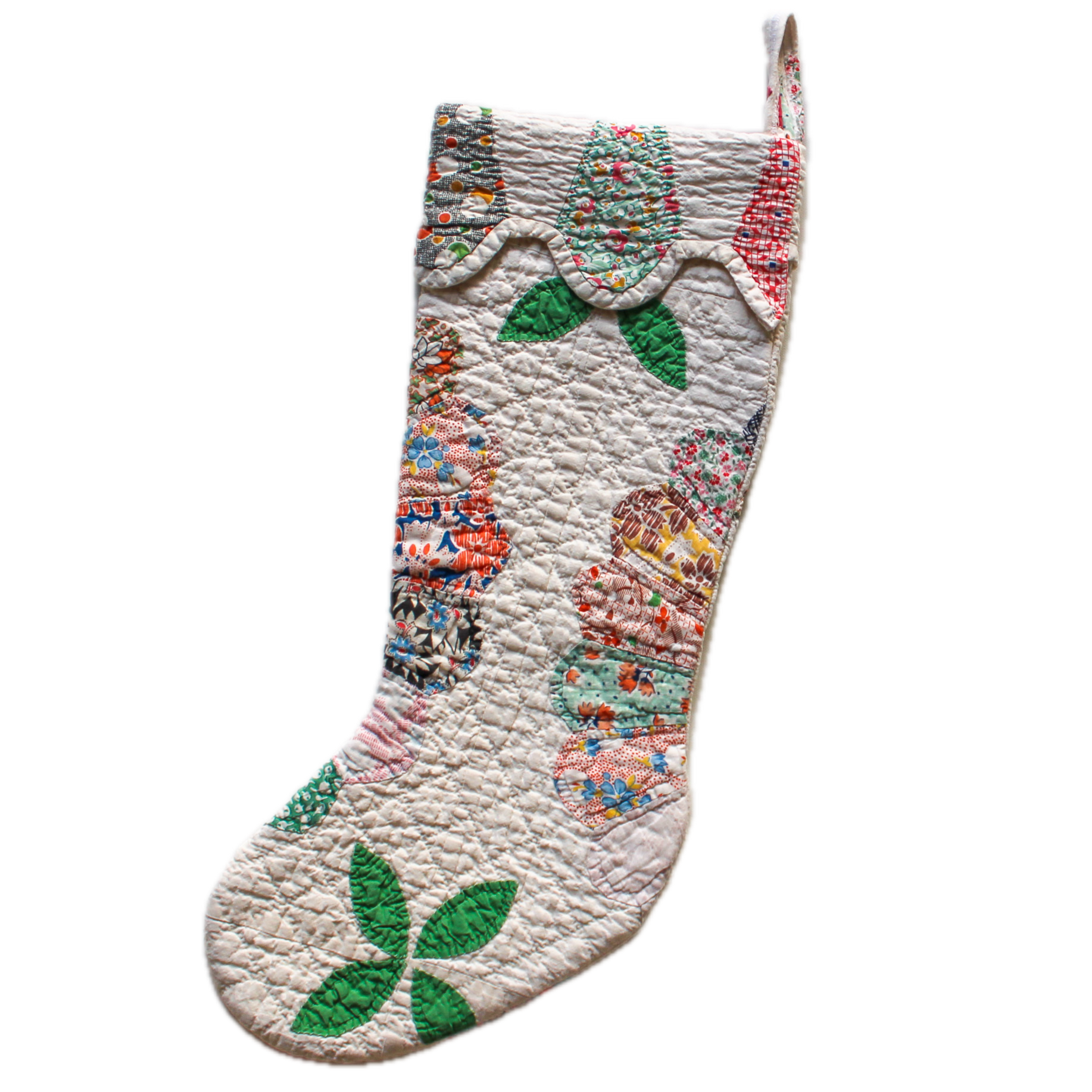 Dresden Plate Vintage Quilt with Flowers Christmas Stocking - Scalloped Cuff - Flower, Hand Quilted, Antique Quilt