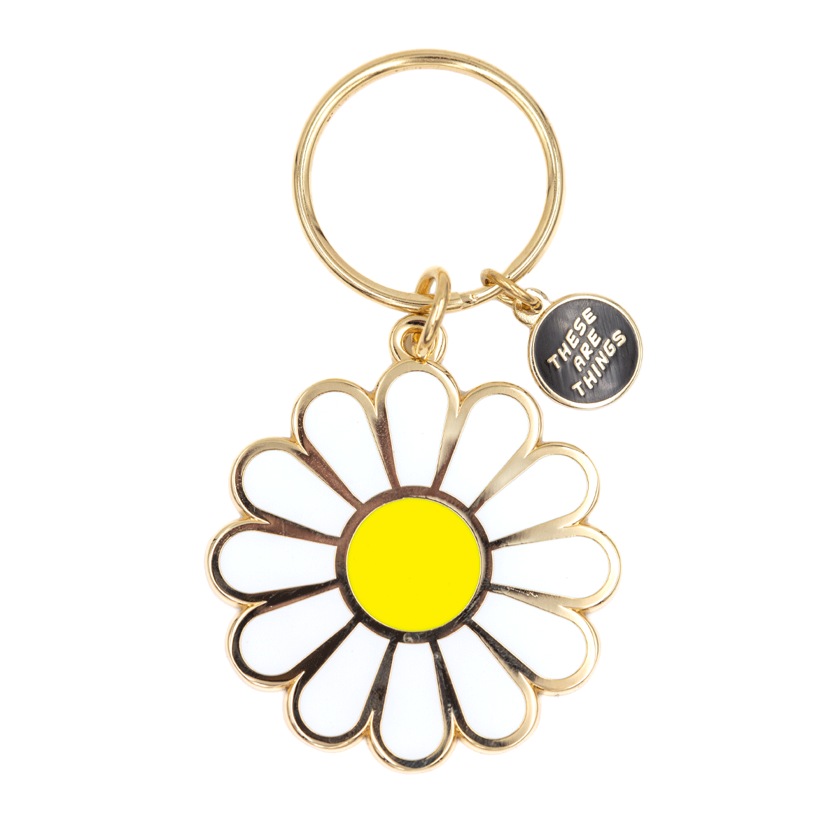 White Daisy Enamel Keychain