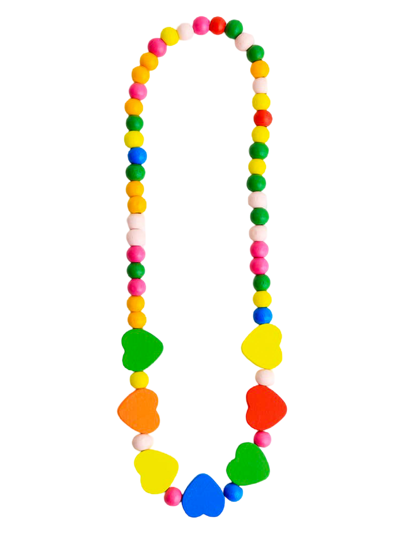Most adorable Wooden Heart Necklace! Crafted from quality wood, it features colorful beads and charming heart accents, making it a fun and playful accessory for kids (or adults!