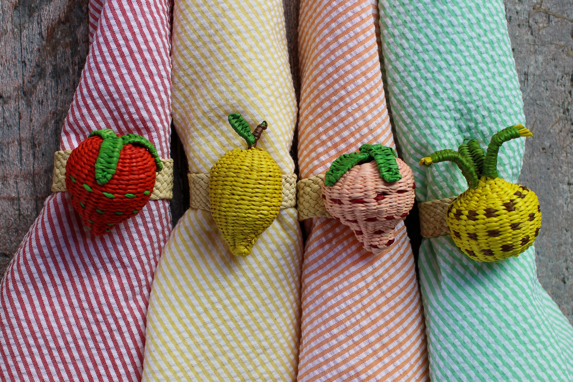 The cutest woven tutti fruiti napkin rings perfect for summer!!