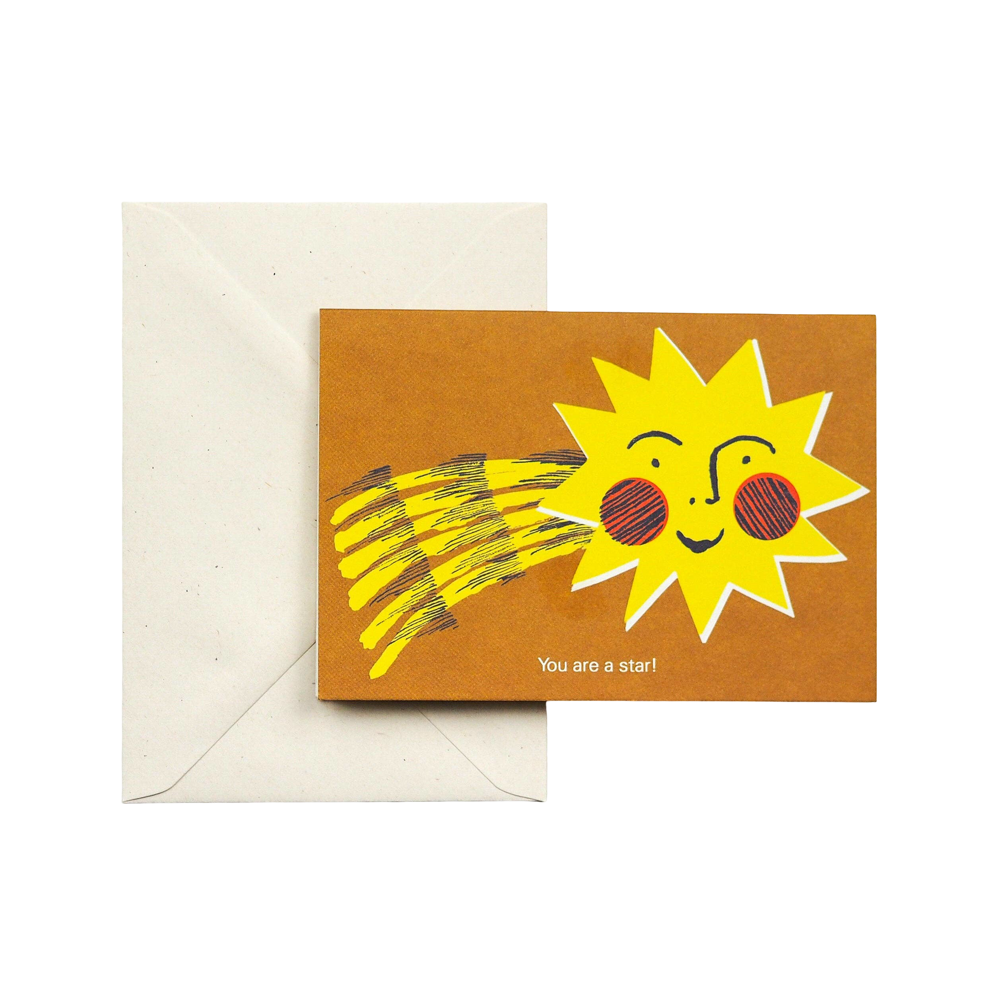 Each card measures 11.5cm x 15cm when folded. Comes in a handsome ivory coloured envelope, the inside is left blank for your own message.